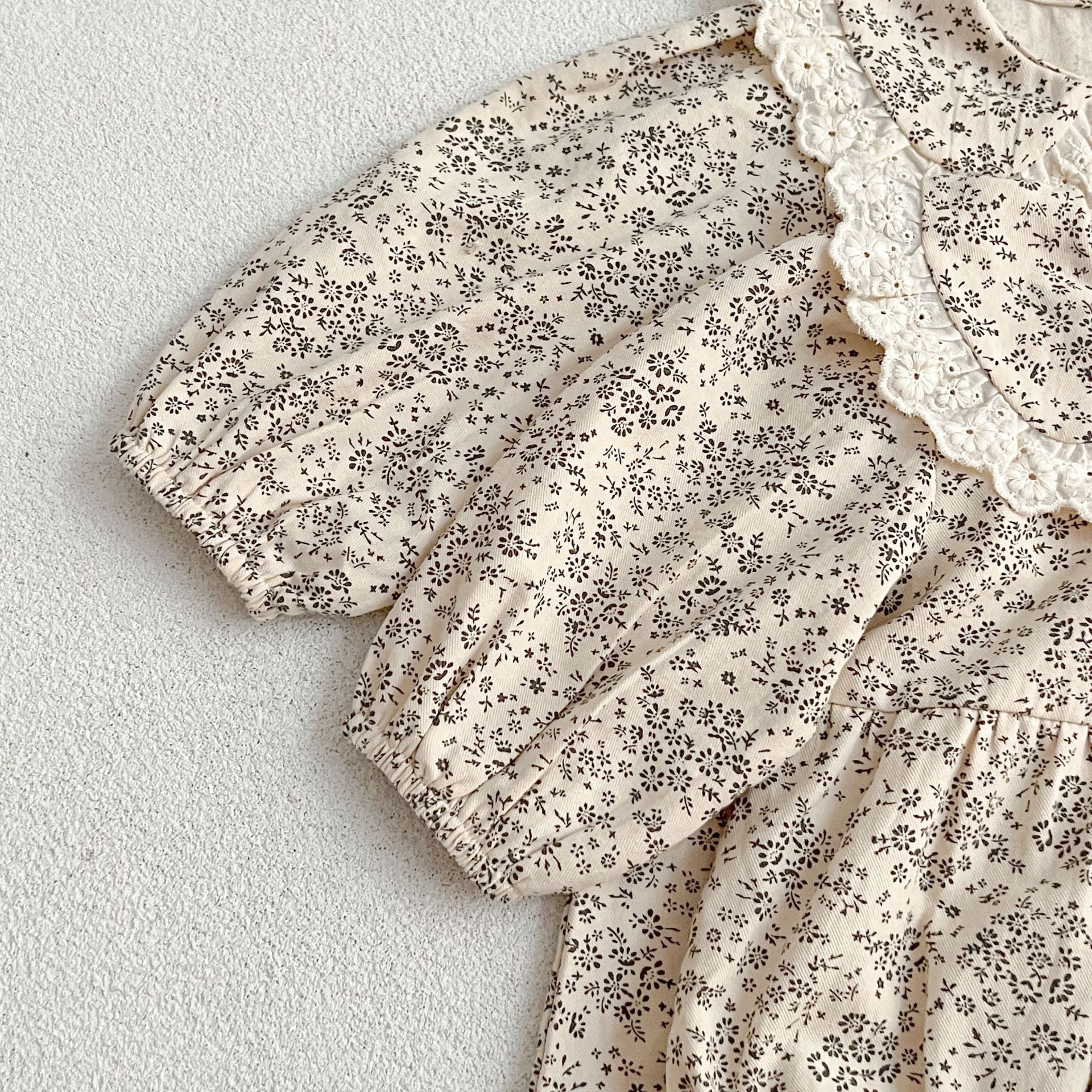 Adorable Baby Lace Collar Romper And Floral Print Girls’ Dress – Princess Sister Matching Set