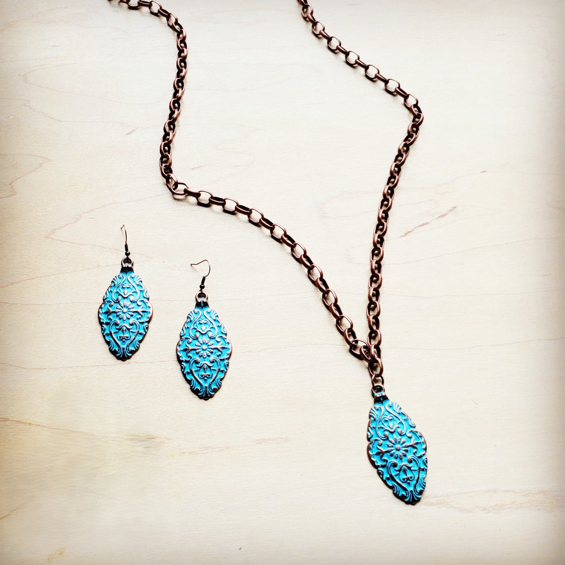 Elevate your style with our Long Copper Layering Necklace featuring a delicate filigree pendant with burnished finish. This boho jewelry piece adds a touch of elegance to any outfit. Crafted with expert precision, our necklace is the perfect accessory for any occasion.