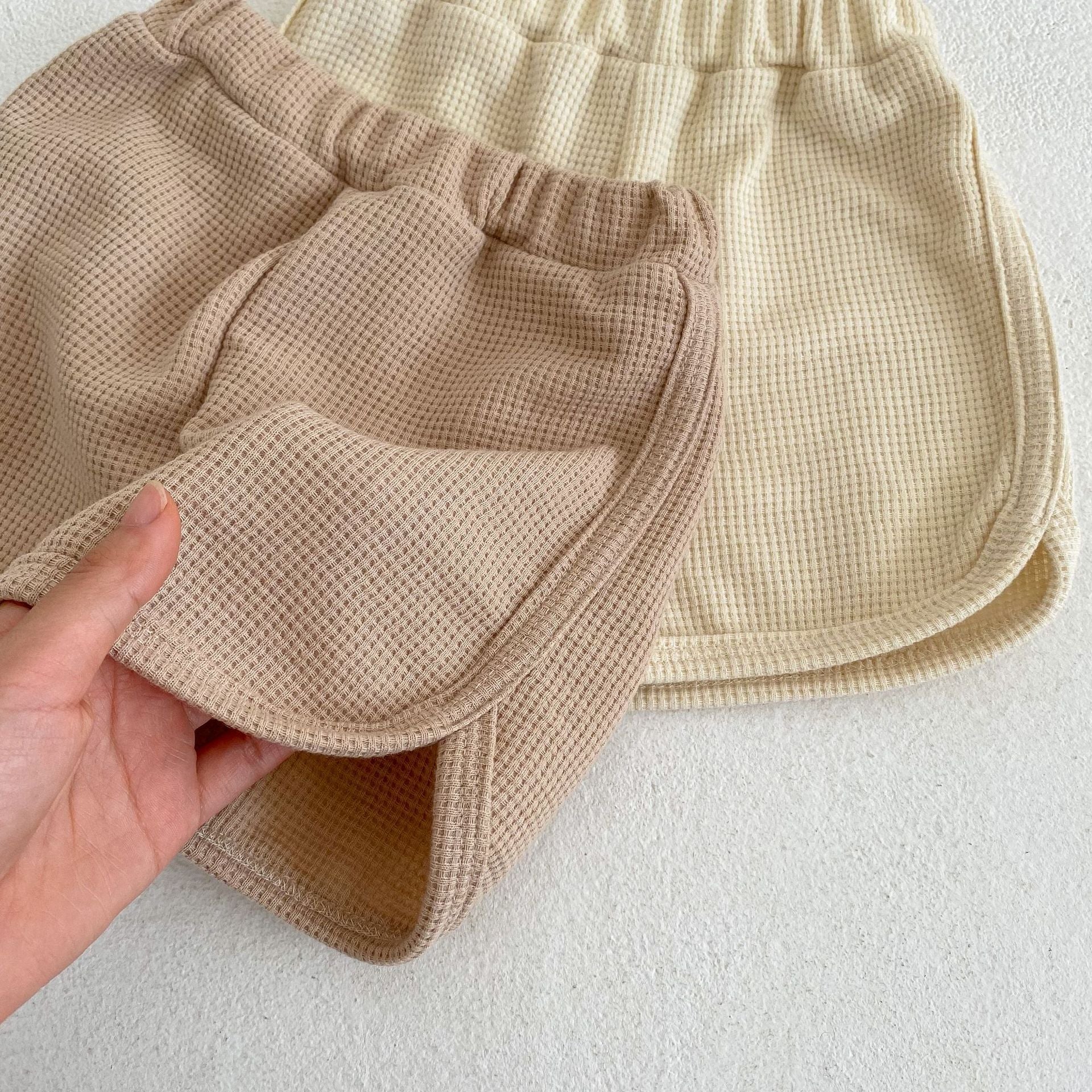 Baby Bear Embroidered Pattern Waffle Fabric T-Shirt Combo Shorts Sets