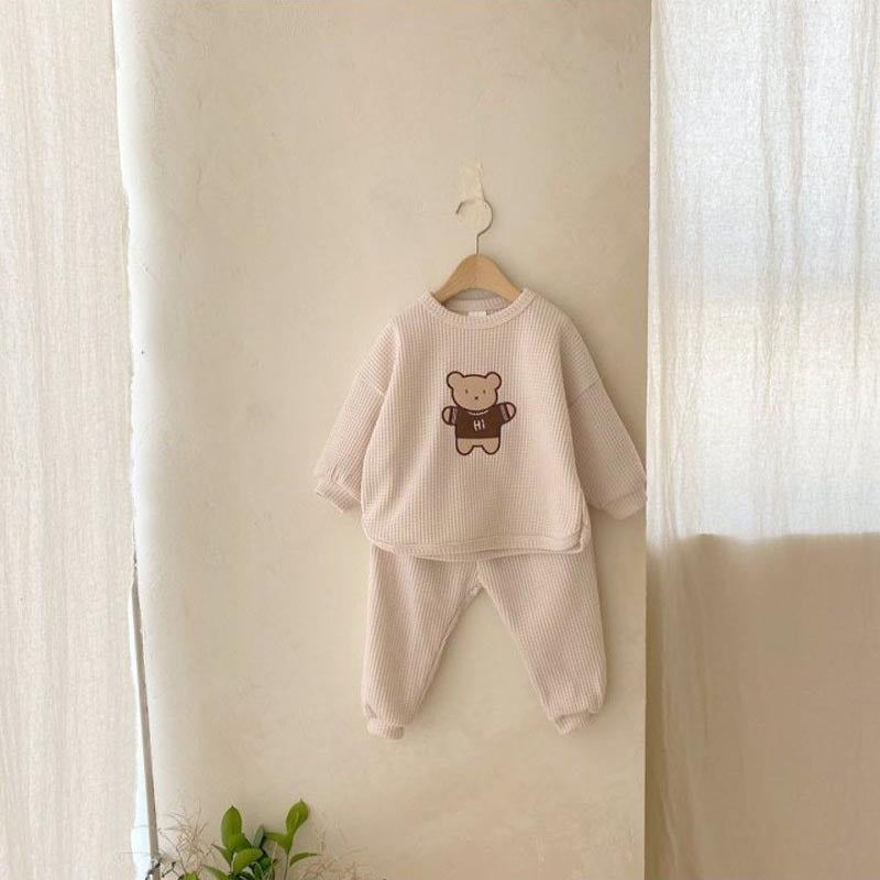 Make your little one look cuddlier than ever with this Baby Cartoon Bear Embroidered Pattern Waffle Fabric Hoodies Set! Embroidered with an adorable bear cartoon, this charming set is sure to be a hit, even if your baby's sense of fashion is (still) a little fuzzy!