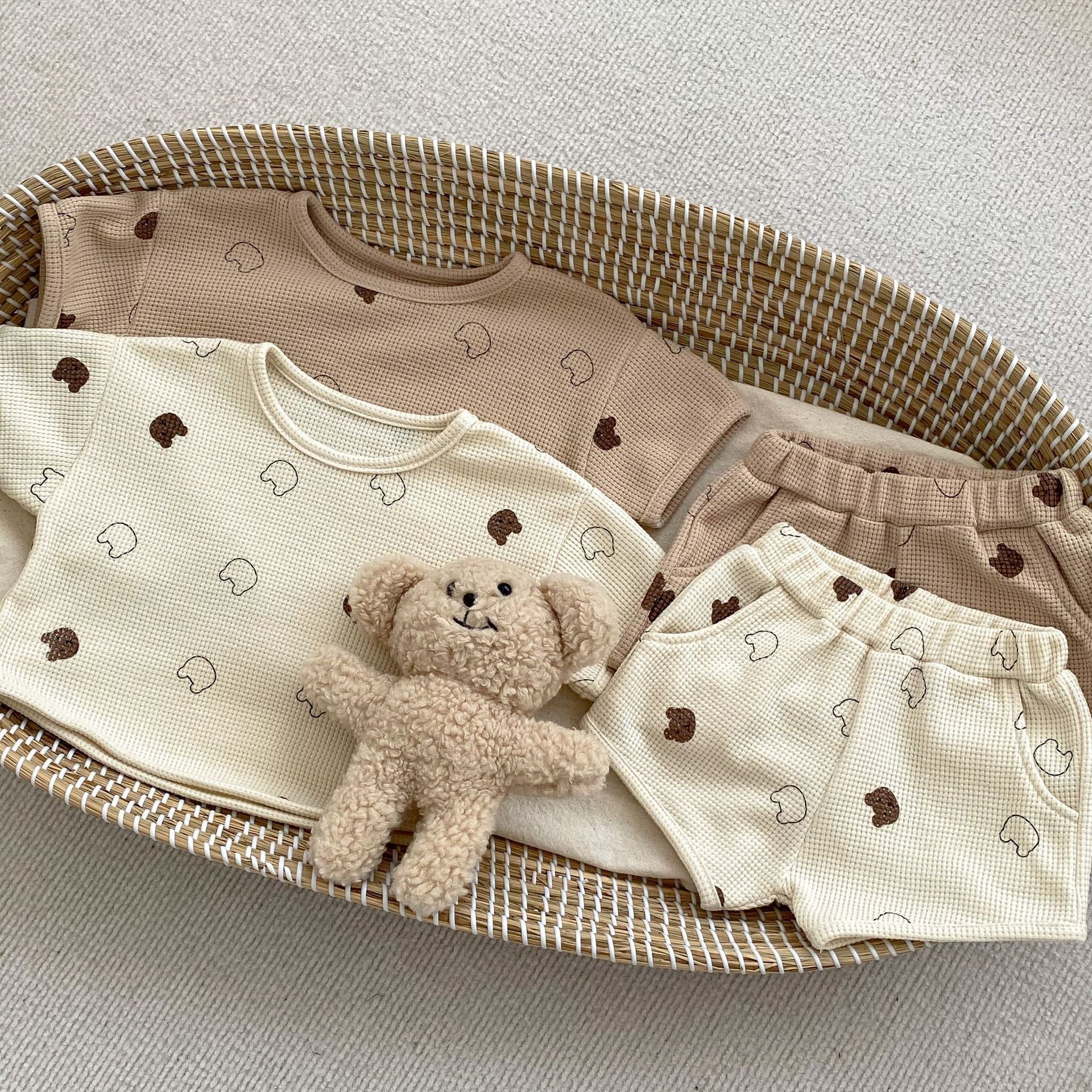 Baby Cartoon Print Pattern Waffle Knitted Fabric Clothing Sets