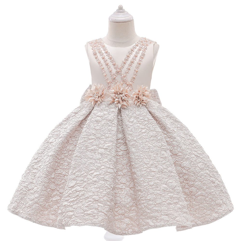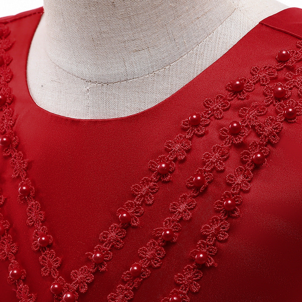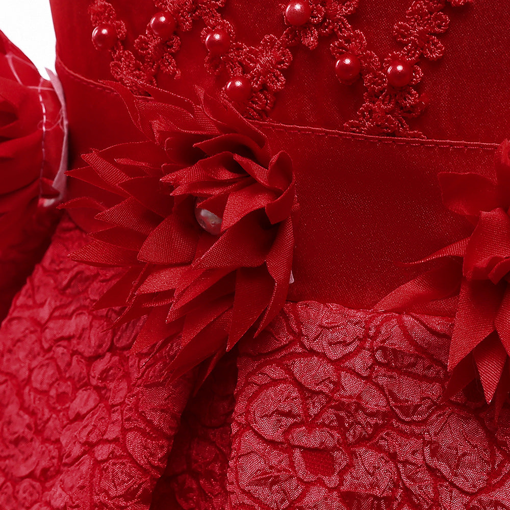 Baby Girl Flower Patched Design Solid Color Sleeveless Princess Formal Dress