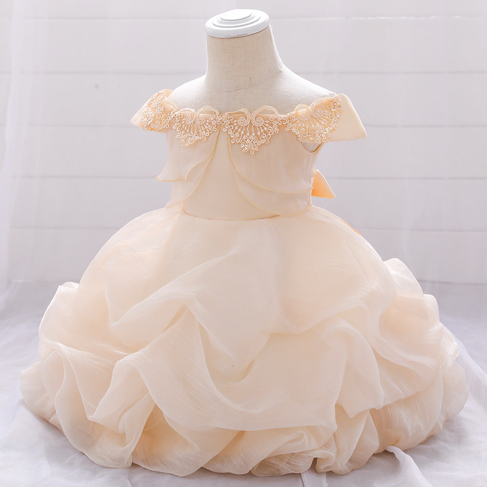 Baby Girl Solid Color One Shoulder Design Tutu Formal Dress Baptism Birthday Dress