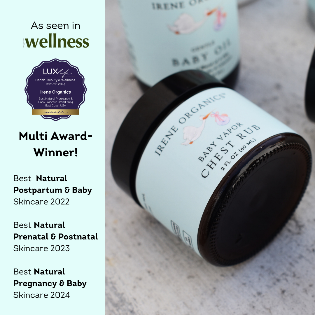Irene Organics Baby Vapor Chest Rub is a natural balm that can aid in relieving congestion and cough for your infant. Designed with all-natural and organic ingredients and no petroleum, this product is guaranteed to be safe for both you and your baby.