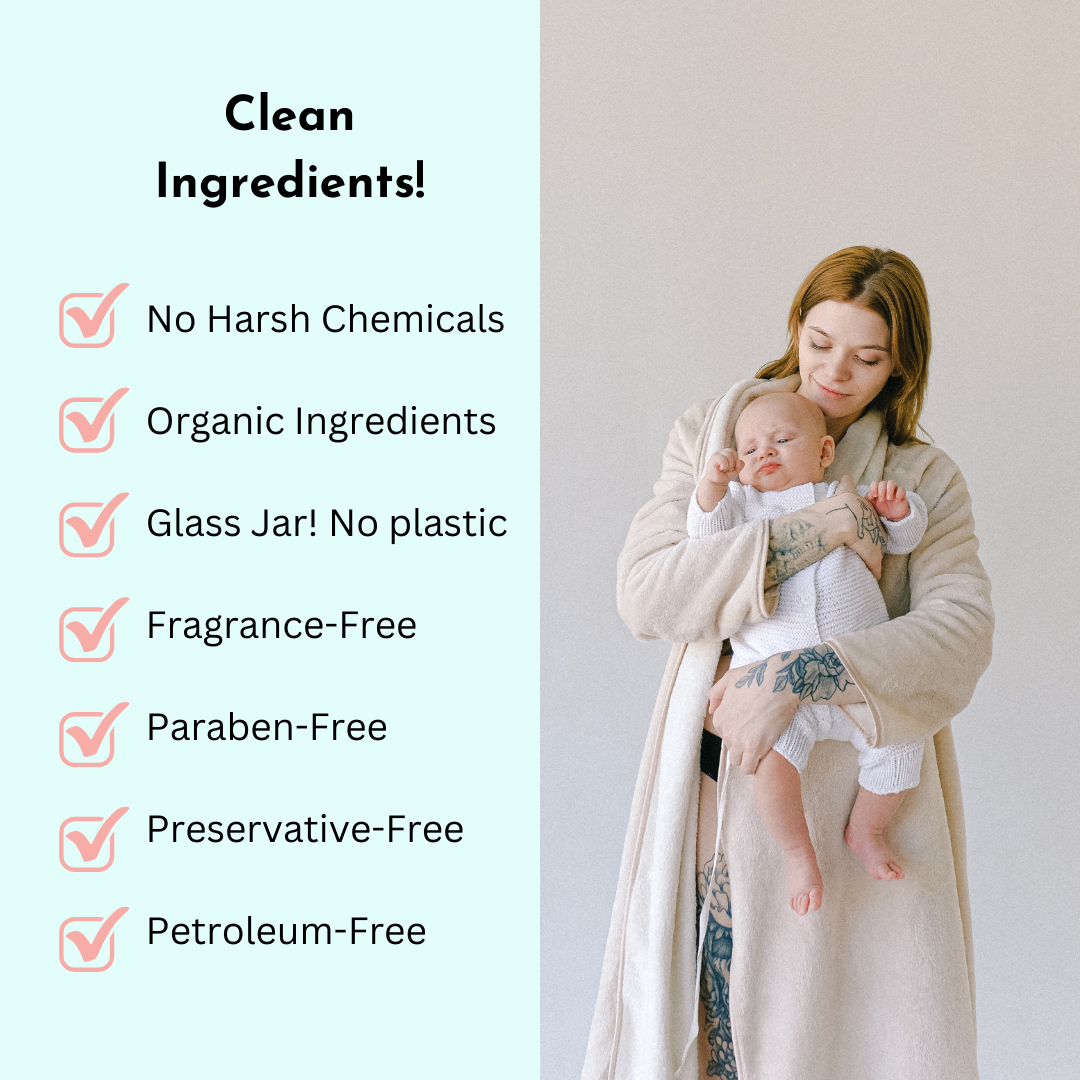 Ingredients: Organic Shea Butter, Organic Coconut Oil, Organic Beeswax, Organic Grapeseed Oil, Organic Calendula Oil, Eucalyptus Radiata Essential Oil, Lavender Essential Oil