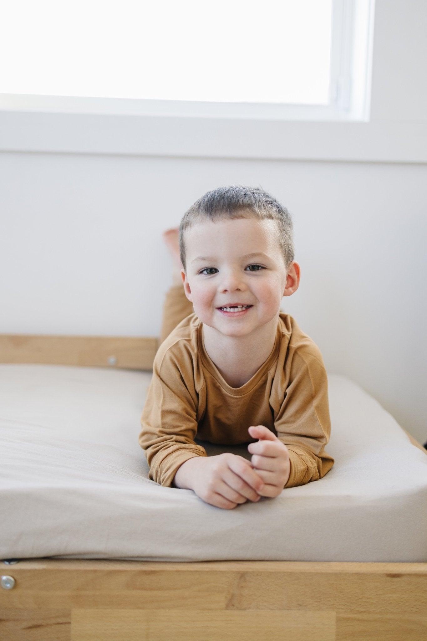 Introducing our Bamboo Terry Crewneck Sweatshirt, the epitome of comfort and style. Crafted from a blend of 92% bamboo viscose and 8% spandex French terry fabric, with a weight of 260gsm, this sweatshirt offers luxurious softness and stretch. Available in camel, black, and heathered gray options, it coordinates perfectly with our jogger pants and drawstring shorts. With sizes ranging from 0-3 Months to Size 5, it's the perfect choice for children of all ages.