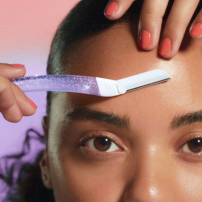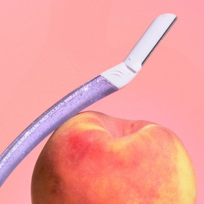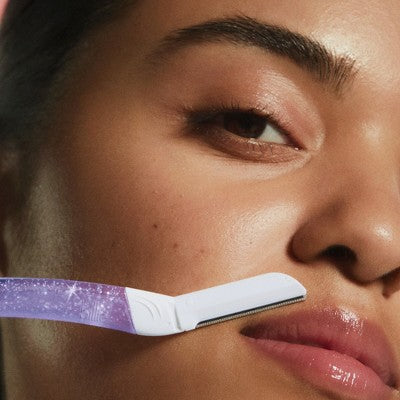 The Billie Dermaplane Starter Kit is perfect for removing peach fuzz and shaping brows with pinpoint precision. Each kit comes with a reusable handle and 3 stainless steel refill blades with protective micro-guards. The rubber handle is comfortable and easy to use with a slip-free grip so you can reach all the angles you need. Plus this dermaplane wand is designed to safely smooth skin and offer gentle exfoliation for a brighter, even-toned complexion. This helps skincare products and makeup glide on more seamlessly. Always prep by washing your hands and face. While we recommend dermaplaning on dry skin, you may add a thin layer of your favorite serum to help your wand glide while you remove peach fuzz. But don’t worry, there’s a step-by-step guide with reference photos included to help walk you through how to dermaplane for the best results. We recommend replacing your dermaplane blades about every 2 shaves. Dermatologist-approved for all skin types, including sensitive skin.