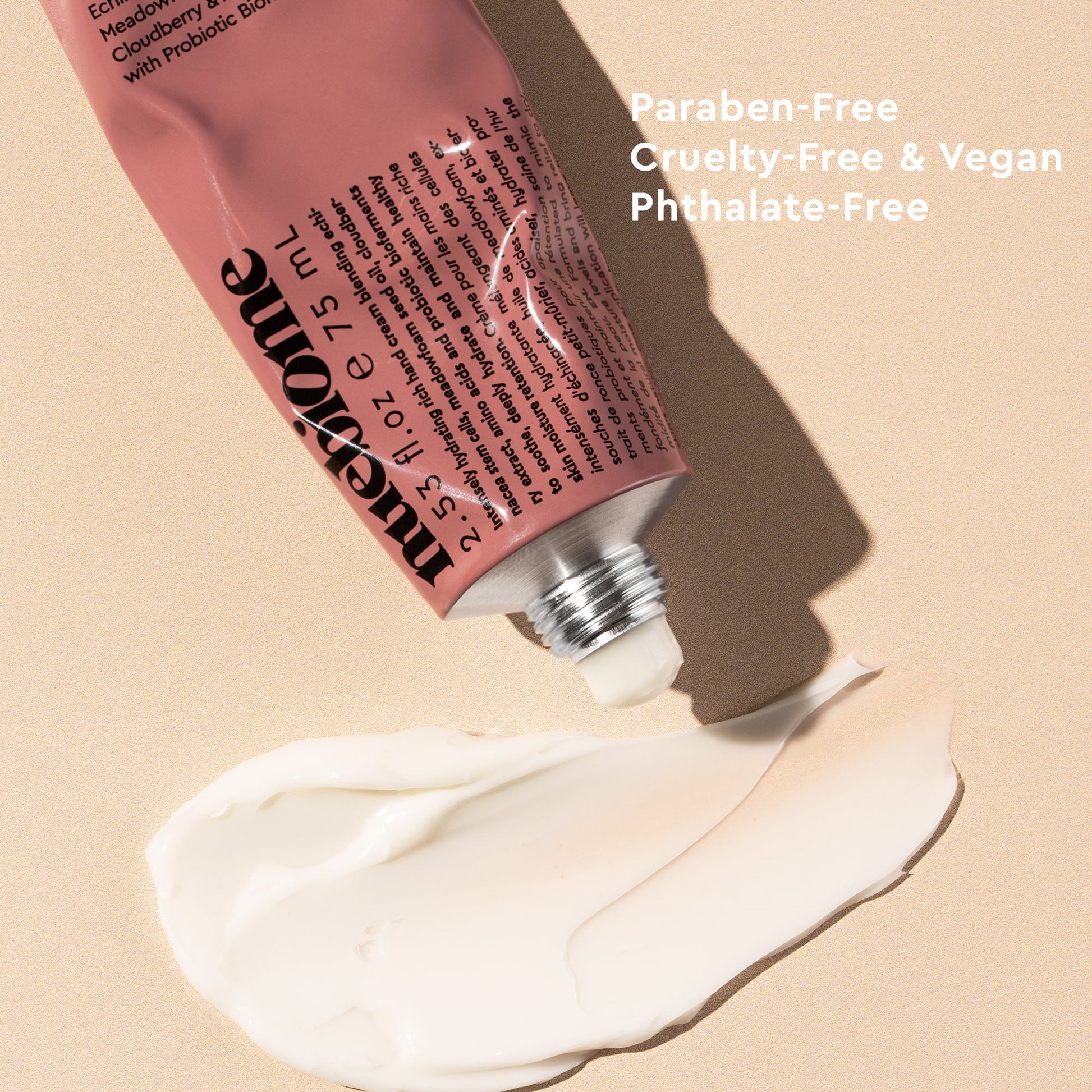 Intensely hydrating rich hand cream blending echinacea stem cells, meadowfoam seed oil, cloudberry extract, amino acids and probiotic bioferments to soothe, deeply hydrate and maintain healthy skin, nail and cuticles.