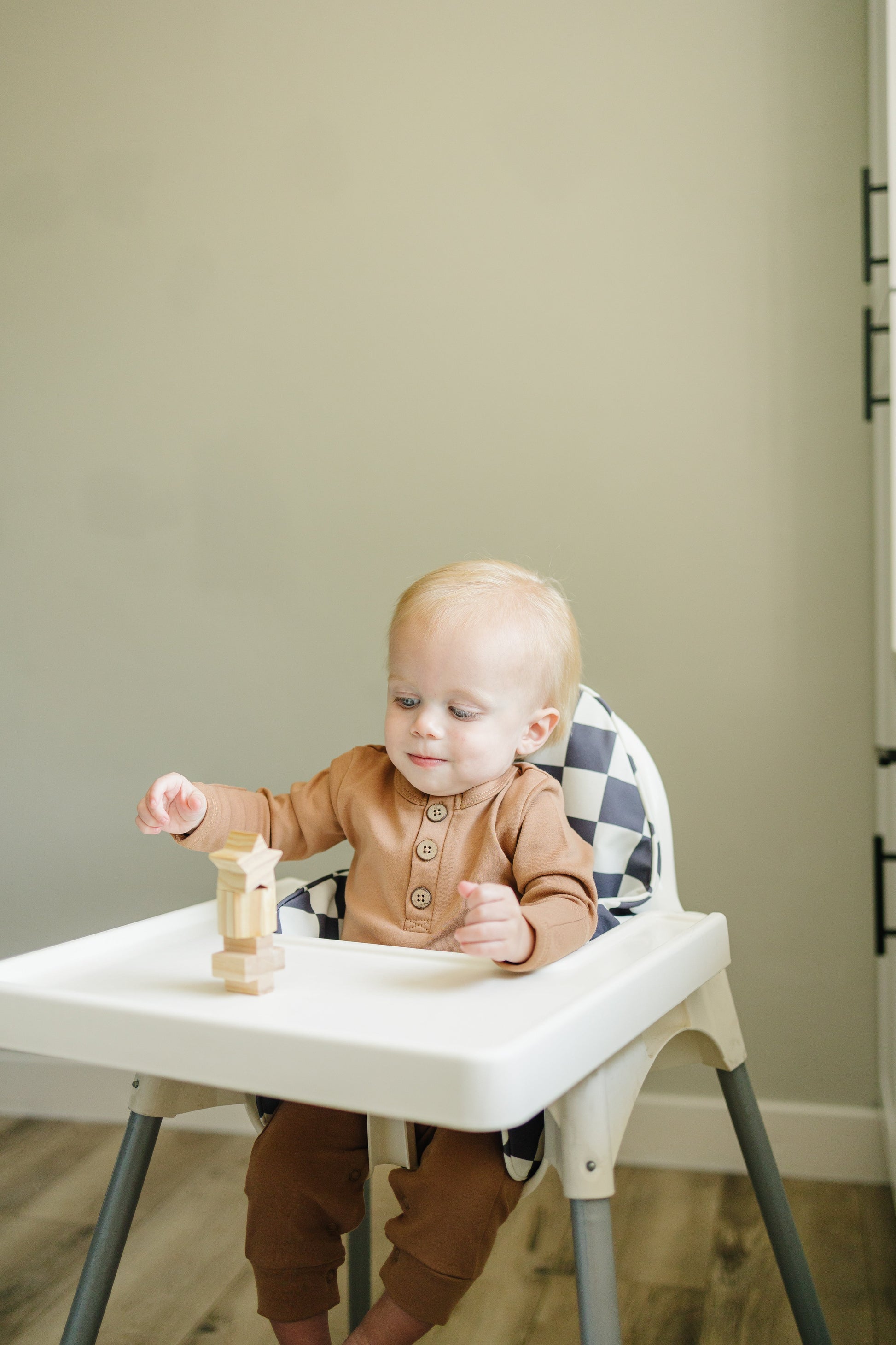 Black Checks printed a white background! Wipeable cushion cover for the IKEA Antilop Highchair