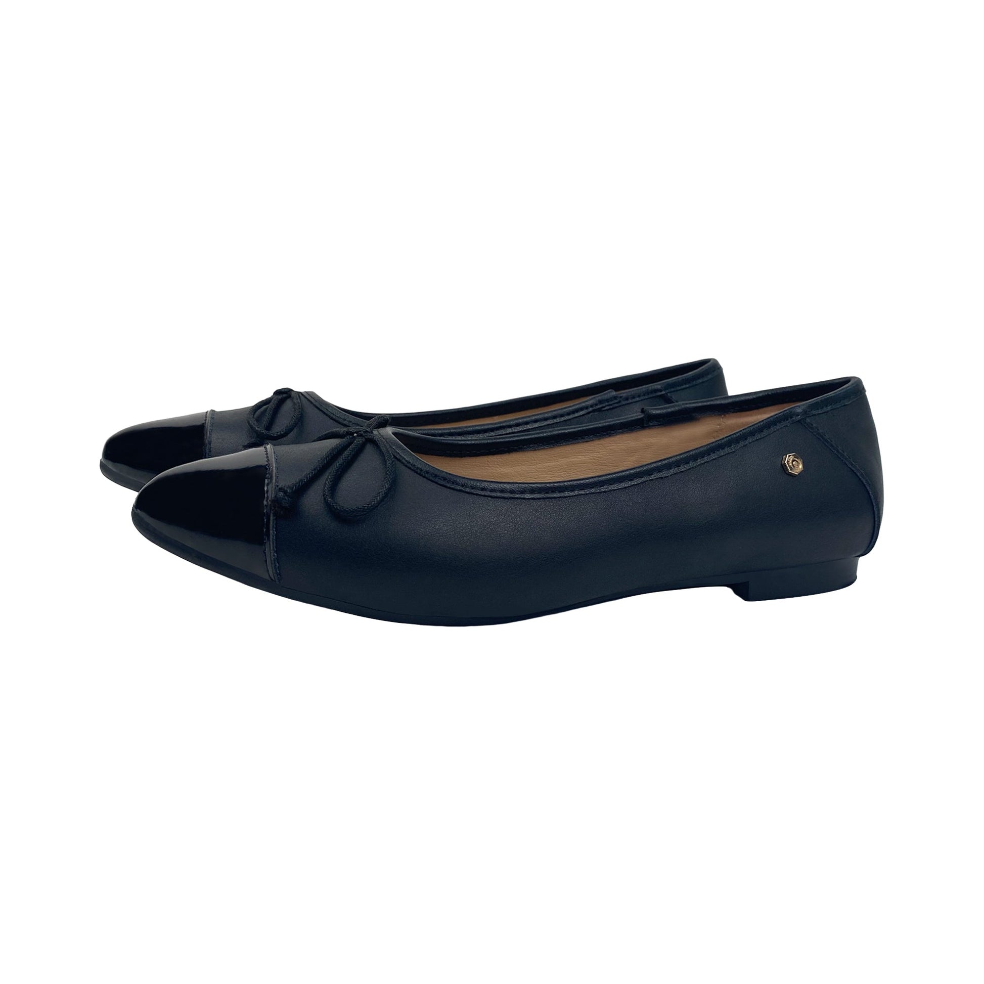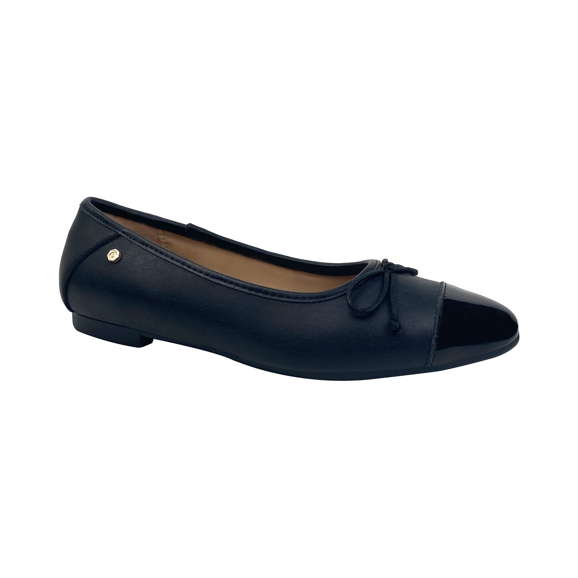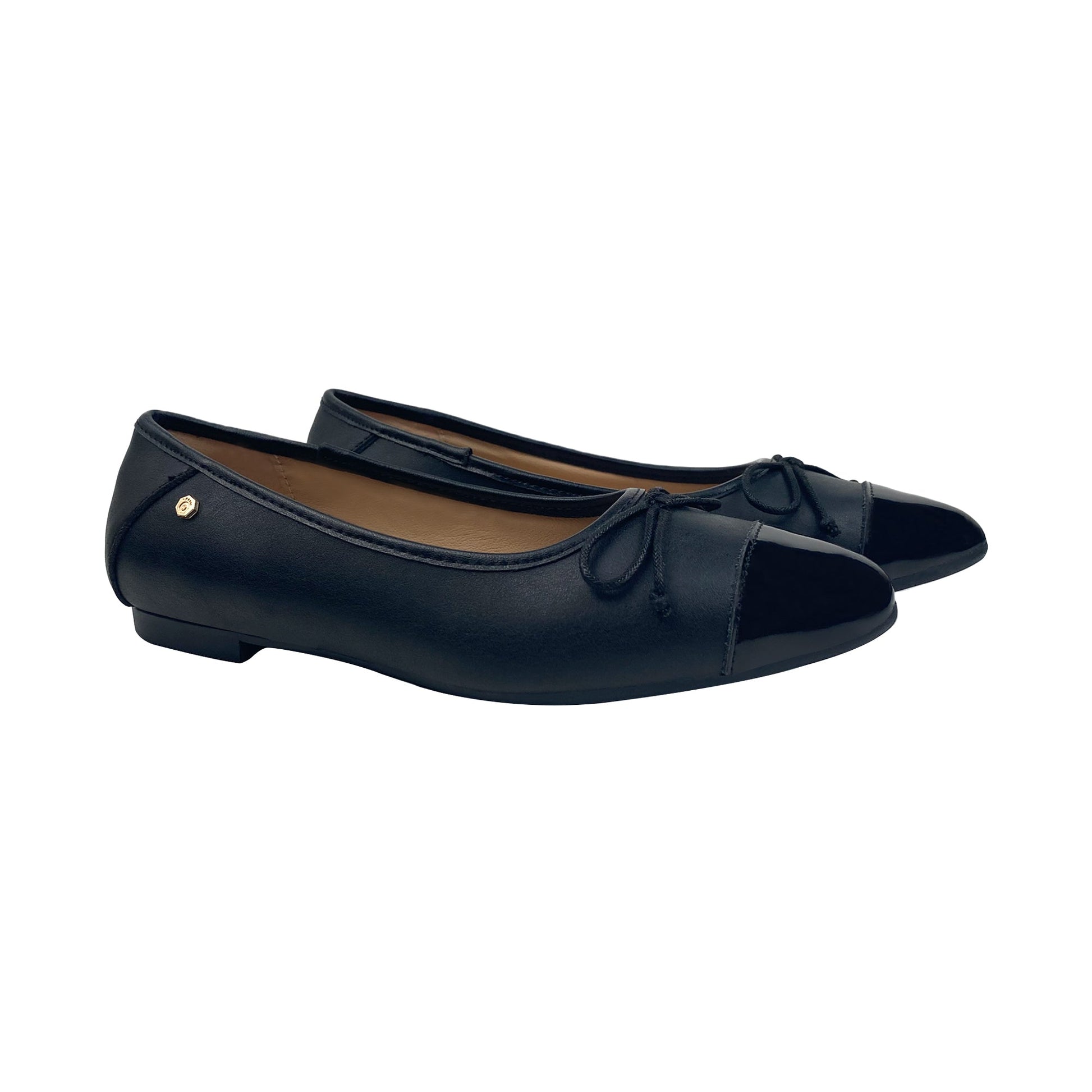 Black Leather Ballet Shoe with Shiny Leather Tip