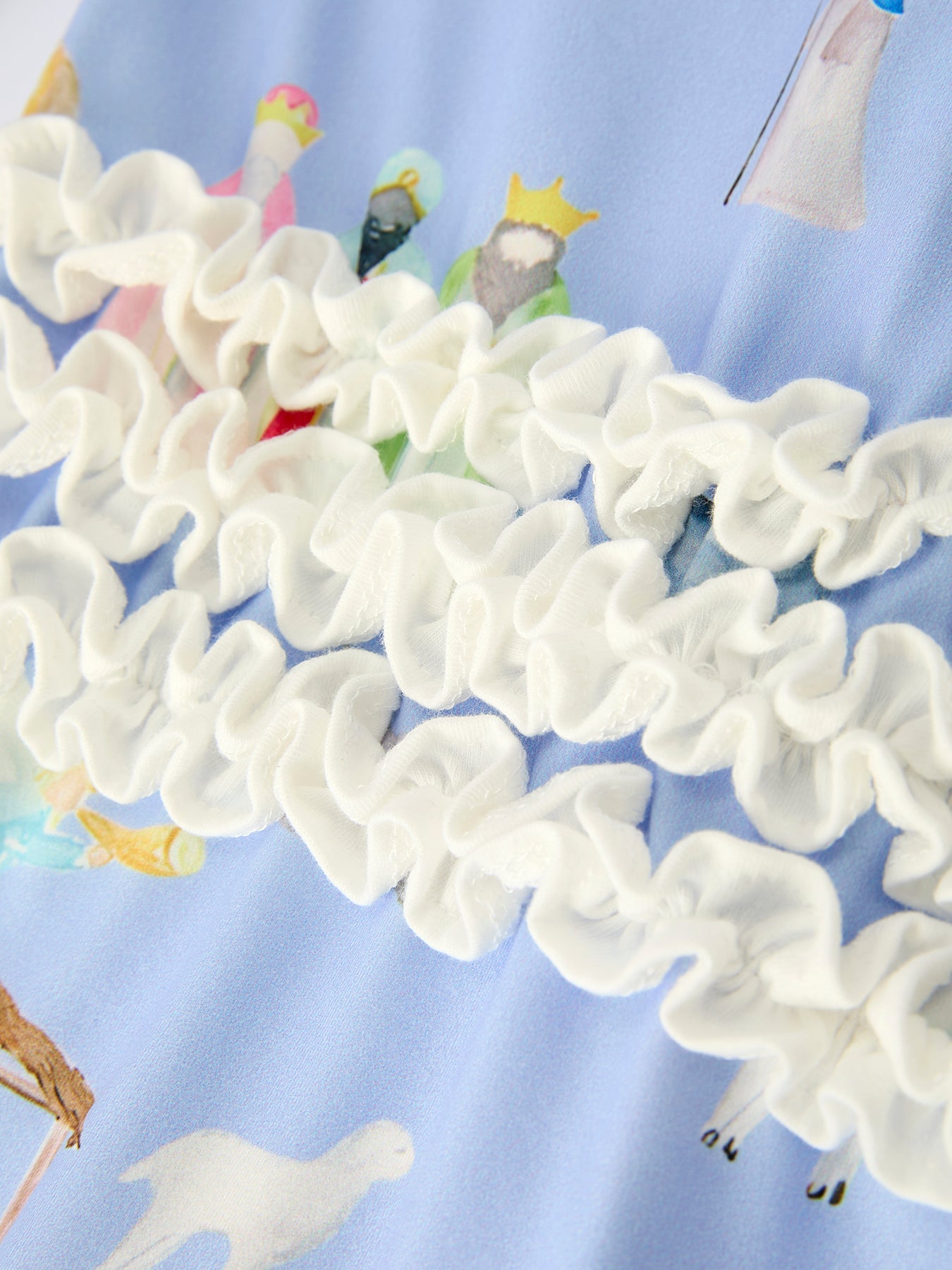 Blue Christmas Nativity Pattern Baby Girls Romper with Ruffles