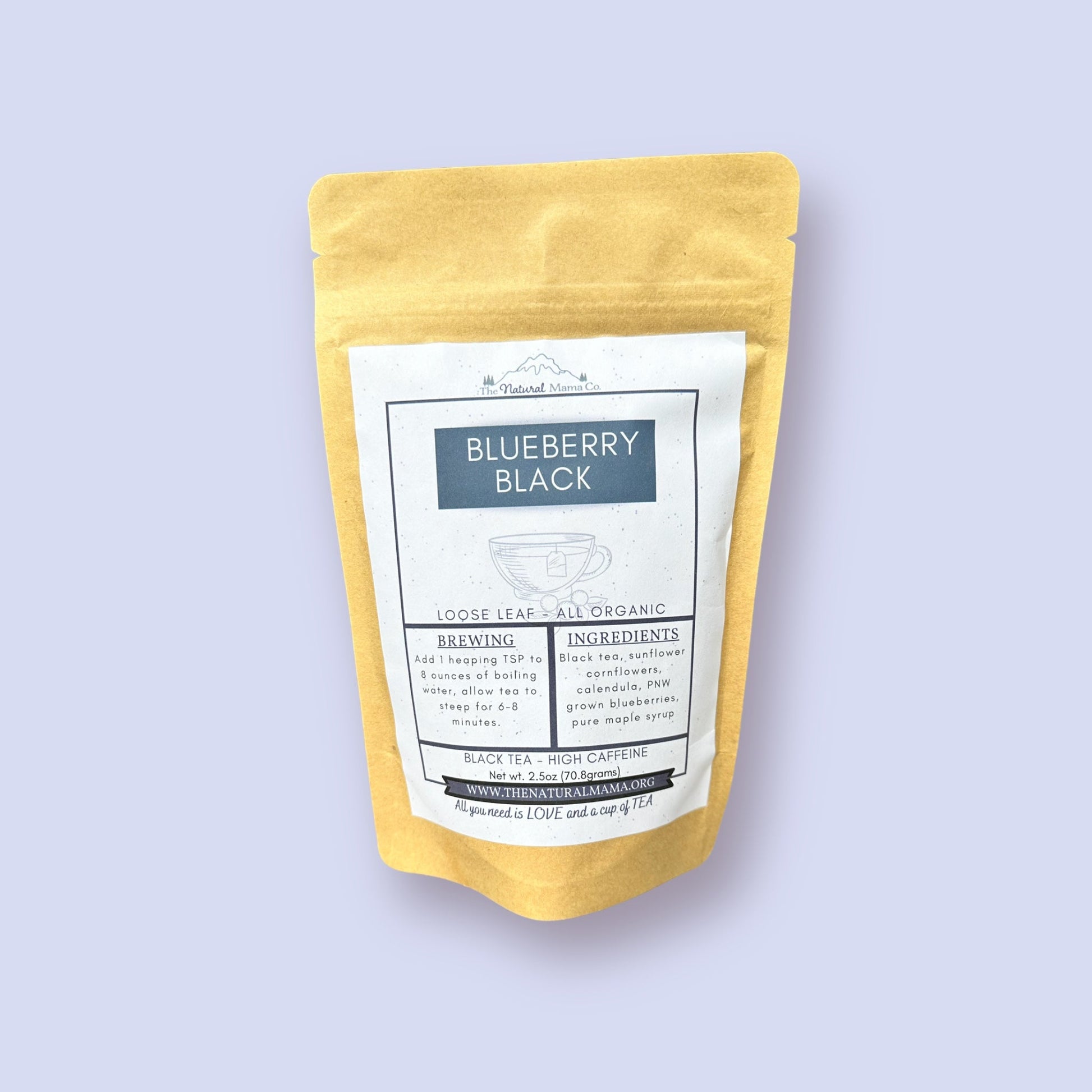 Ingredients: Black tea, sunflower petals, corn flower petals, calendula, wild Pacific Northwest blueberries, pure maple syrup.