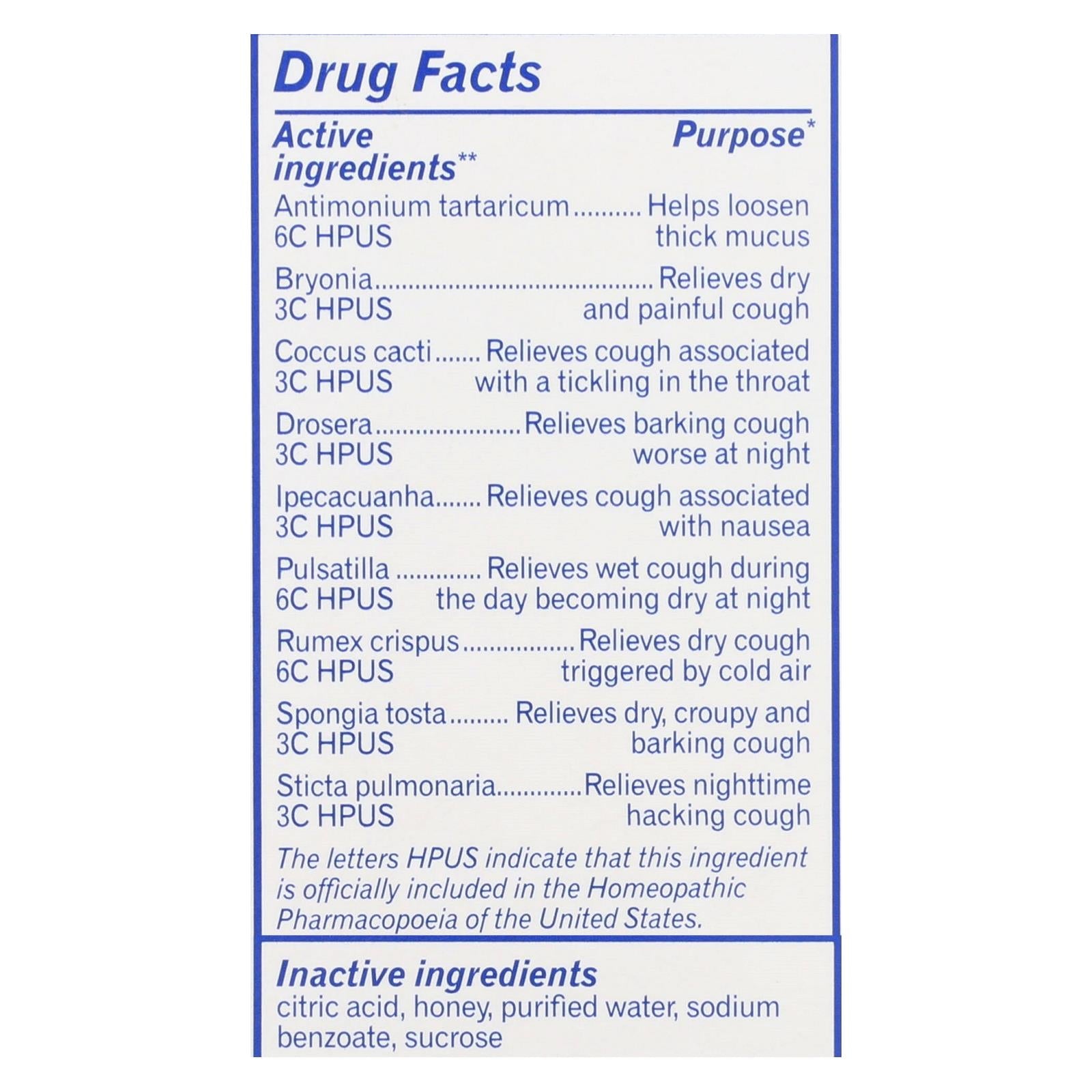 - Antimonium tartaricum 6C HPUS: Helps to loosen thick mucus.