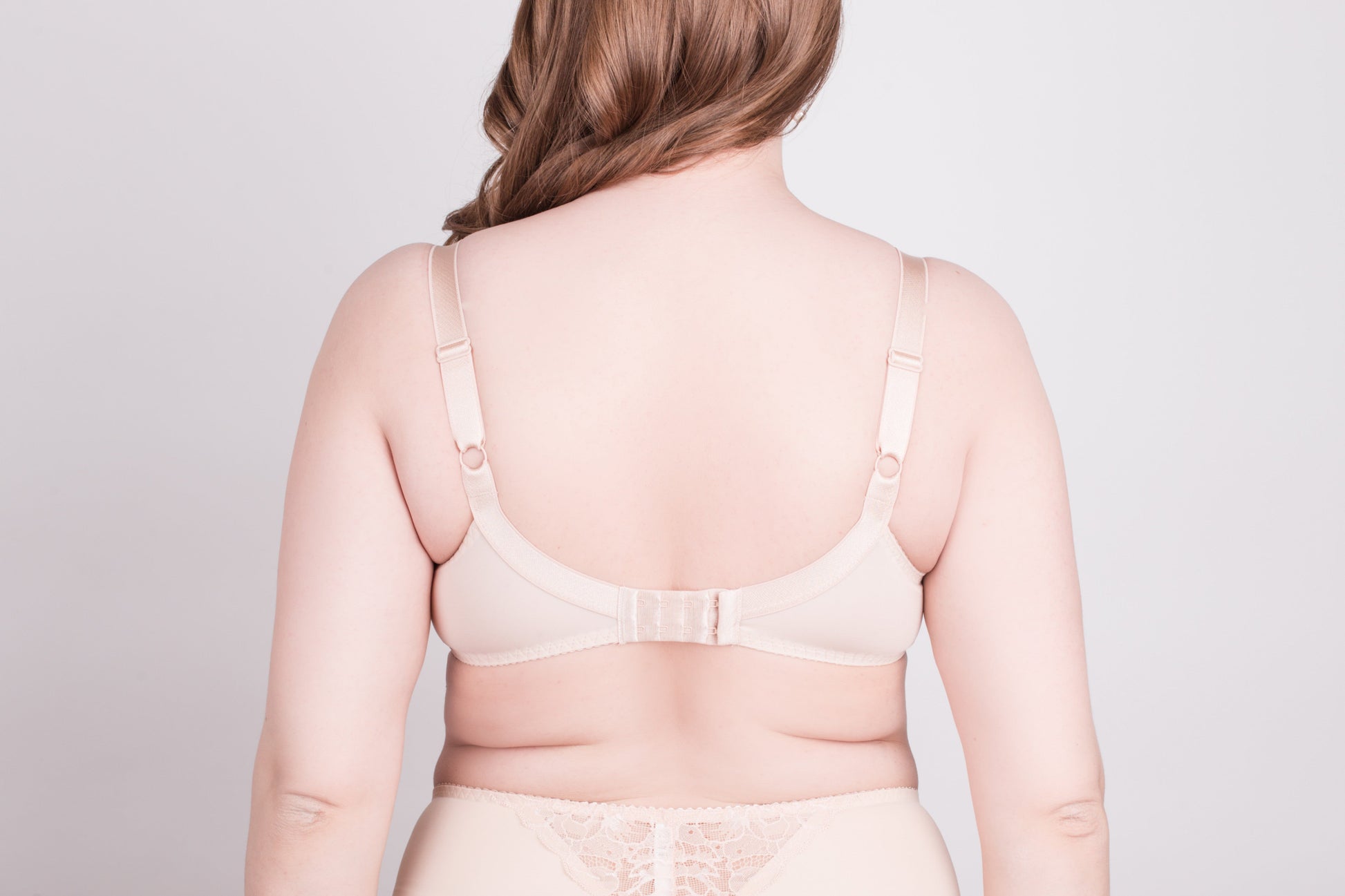 A classic bra made from elastic fabric and knit fabric. The upper part of the cup features an insert made of elastic lace fabric. This underwired model has soft cups with double segmentation, a side shaping detail, and wide straps. It utilizes a four-row closure, allowing for perfect adjustment of the bra's volume. The width of the straps and closure varies depending on the bra size. The bra is embellished with a pendant.