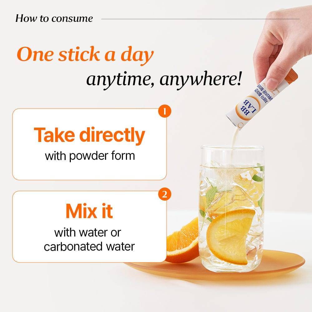 | Ingredients | Low Molecular Weight Fish Collagen, Anhydrous Crystalline Glucose, Dried Yeast with Glutathione, Concentrated Orange Powder (Dextrin, Concentrated Orange Liquid, Gum Arabic), Natural Orange Flavor Powder, Vitamin C, Anhydrous Citric Acid, Enzyme-Treated Stevia, Vitamin E Mixture (DL-α-Tocopheryl Acetate, Glucose, Modified Starch, Silicon Dioxide), DL-Malic Acid, Hydrolyzed Elastin, Hyaluronic Acid Mixture (Dextrin, Hyaluronic Acid), Concentrated Milk Protein, Vitamin A Mixture (Glucose, Corn Starch, Gum Arabic, Vitamin A Acetate Powder, Vitamin E), Glycine, L-Proline, L-Cystine, Concentrated White Tomato Extract Powder, Sucralose, 17 Types of Mixed Lactic Acid Bacteria |