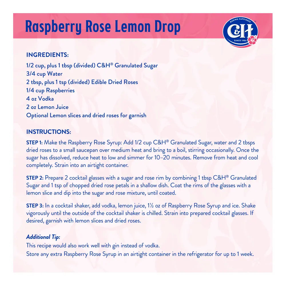 - Granulated Sugar: C&H Sugar Granulated is a versatile and essential ingredient for all your baking and cooking needs, providing a consistent source of sweetness and texture enhancement.