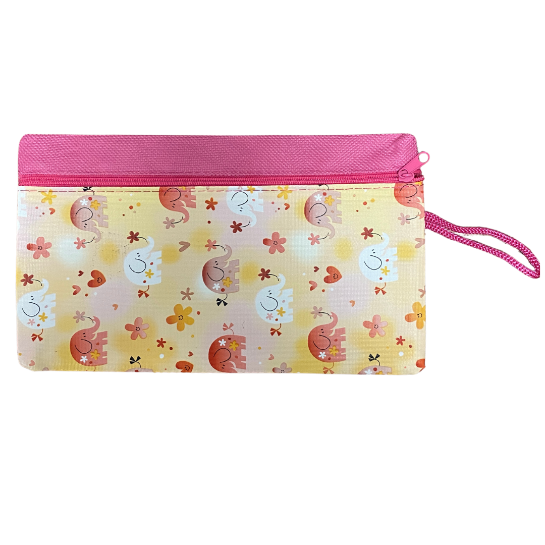 ¡Organiza tus útiles con ternura! Esta cartuchera con diseño de elefantes y flores es práctica y adorable. Con cierre seguro y tamaño ideal para lápices, marcadores y más. ¡Perfecta para mochilas escolares!