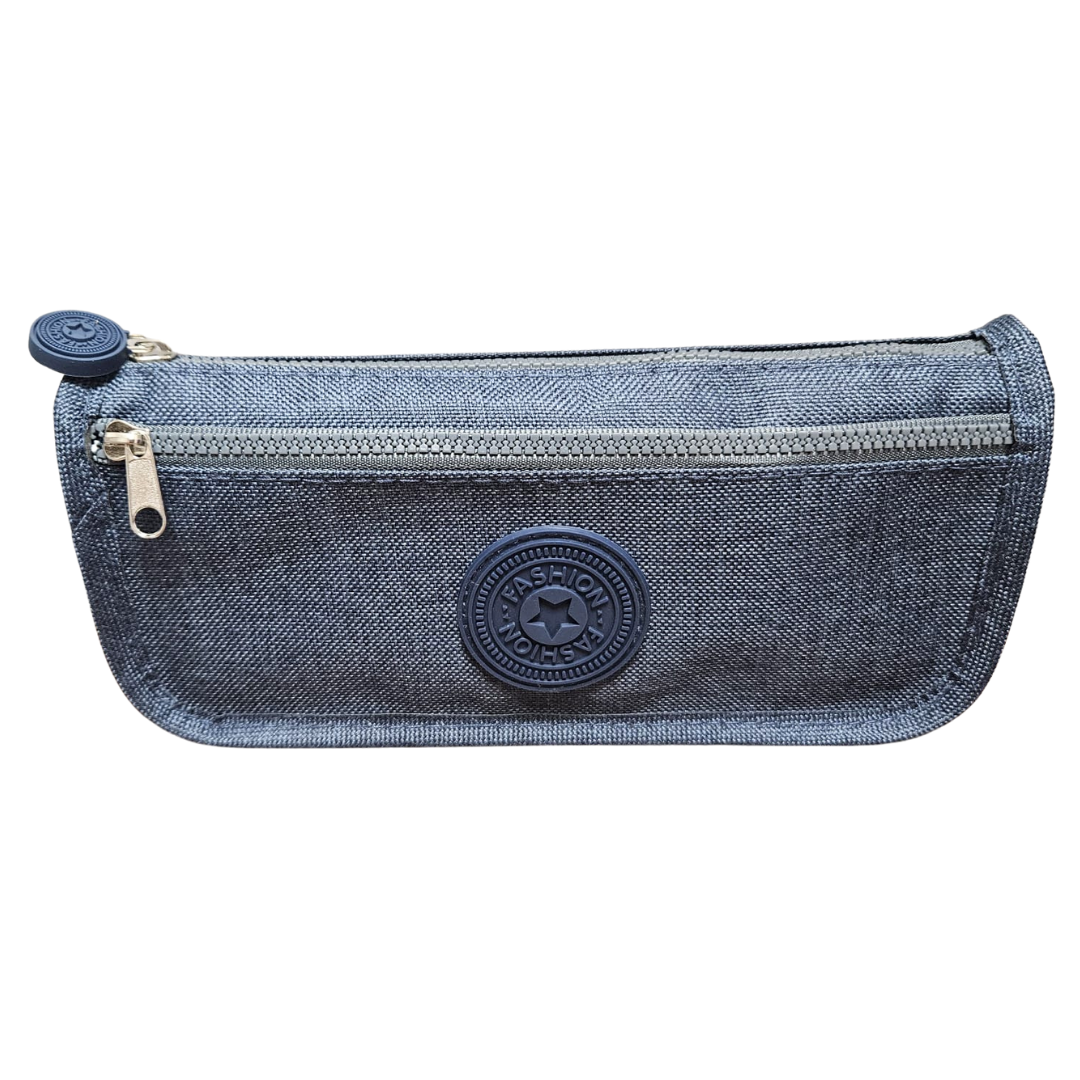 Cartuchera resistente de tela tipo mezclilla con cierre frontal y compartimento principal. Ideal para lápices, bolígrafos y accesorios escolares. Diseño moderno y funcional para el uso diario. ¡Organiza con estilo!