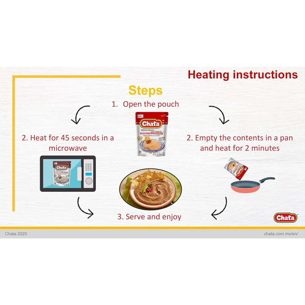 - Versatile and Easy to Prepare: Chata Refried Bean with Chilorio can be served as a side dish, used as a filling for tacos or burritos, or enjoyed on its own with tortilla chips.