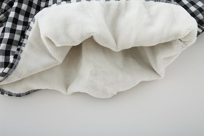 The perfect dress for your little one! This preppy dress features a check plaid pattern with a cute doll collar design and adorable bear cartoon embroidery. The thick material will keep your child warm and stylish during the colder months.