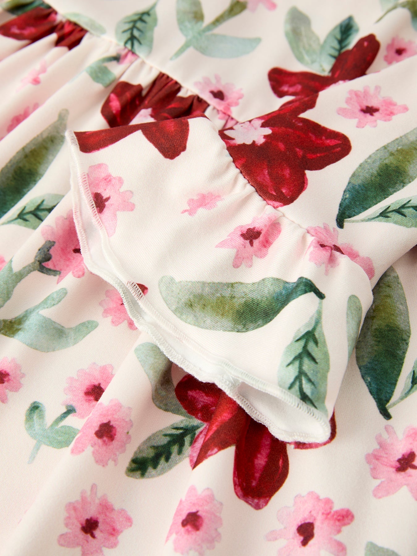 Christmas Girls' Long Sleeve Floral Dress – Red and Pink