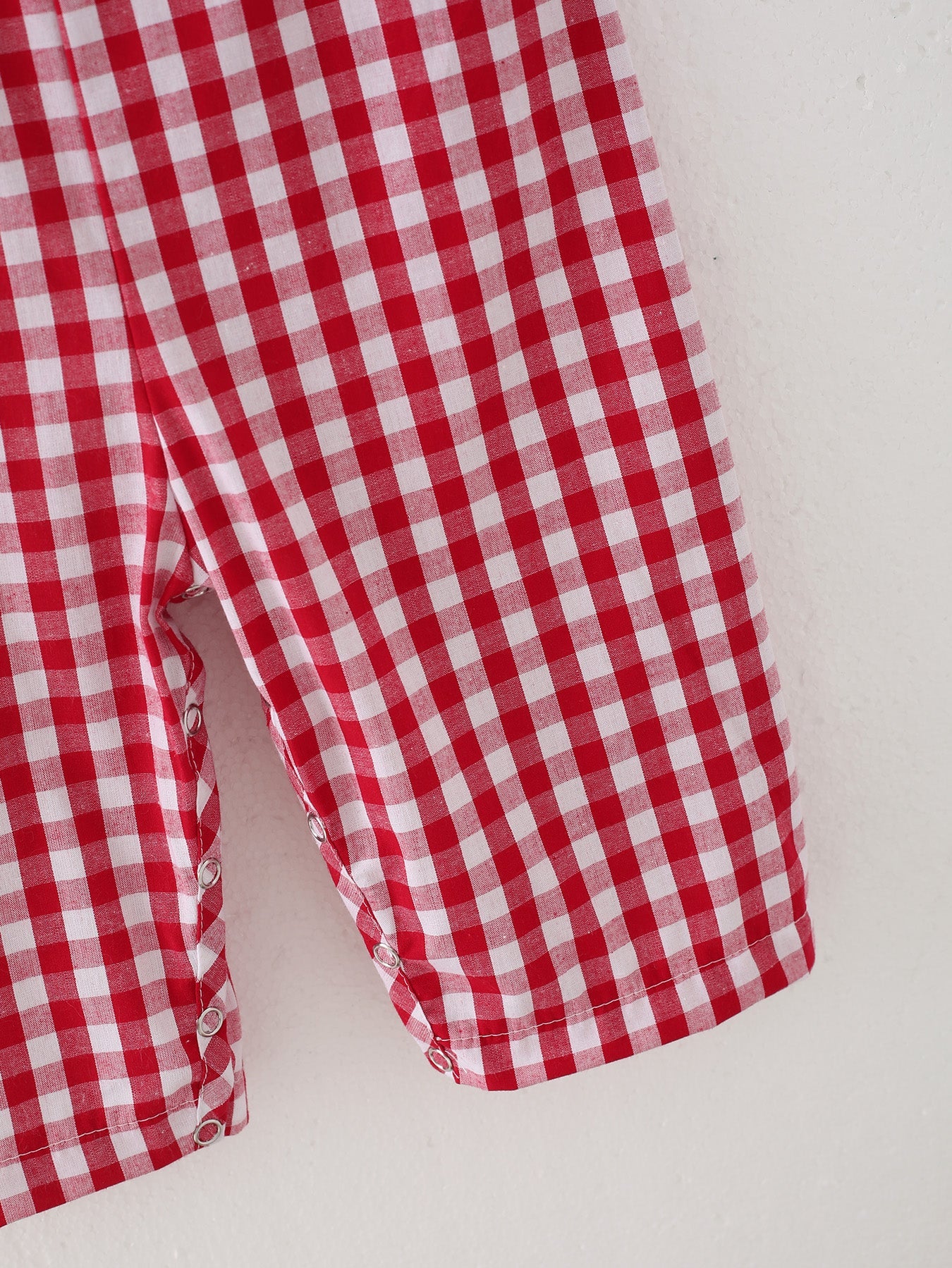 Dress your little man for the holiday season with our Christmas Tree Smocking Embroidered Boys Romper. Featuring a festive Christmas tree design, this romper is perfect for family gatherings and photos. Made with high-quality materials, it provides comfort and style for your little one. Get yours today and make this Christmas a memorable one!