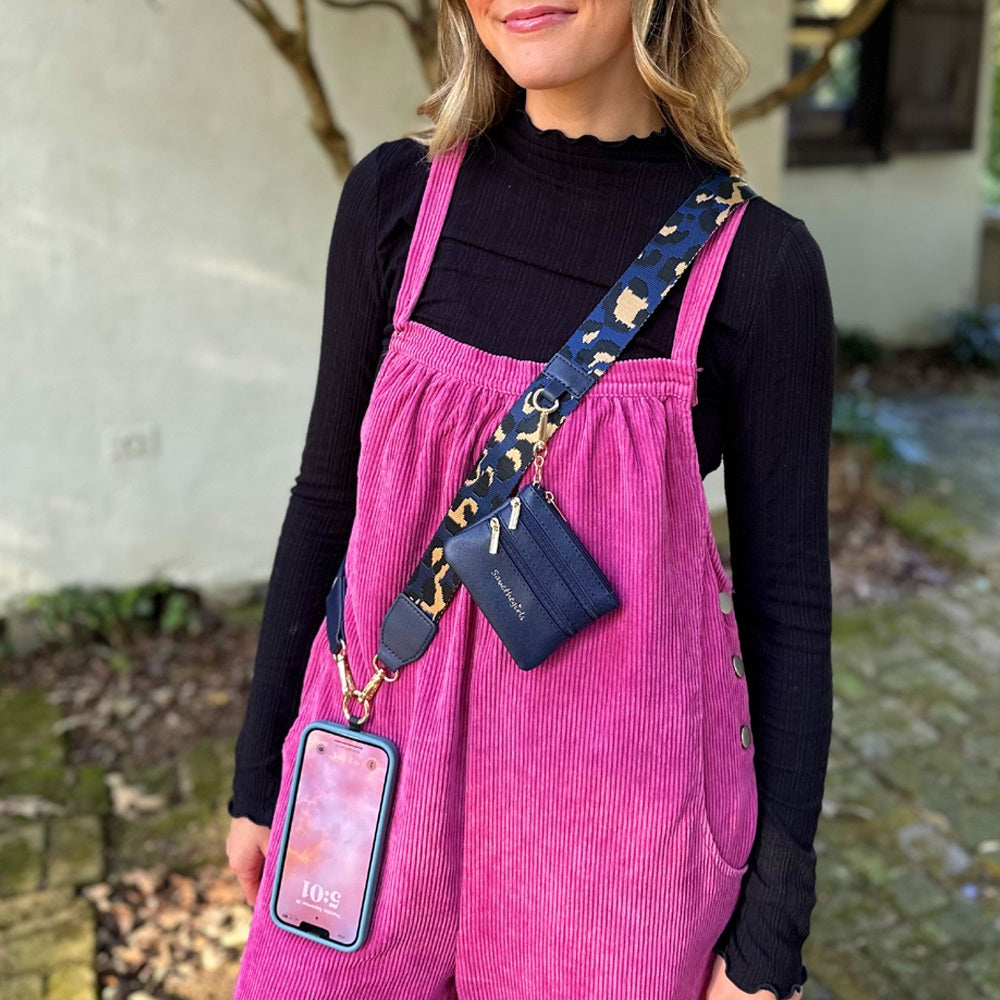 The Leopard Collection brings a trendy and attractive design to your phone accessories. These straps allow your phone to hang at your side hands-free, while the included innovative hanging phone card, convenient zippered change pouch, and detachable wristlet combine to create a product with undeniable global appeal.