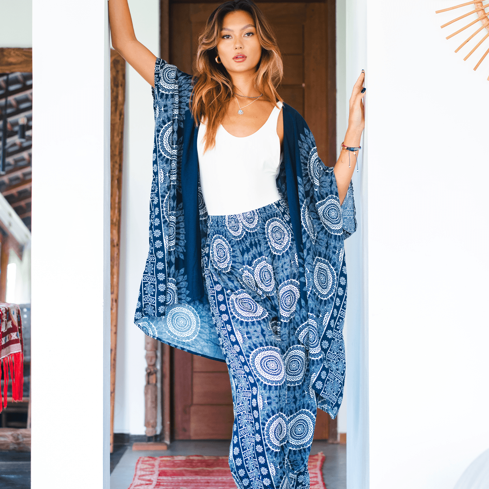 Embrace effortless style and ultimate comfort with the Como Kimono & Harem Pant Lounge Set. Crafted from our signature buttery-soft fabric, this set is designed to move with you, whether you're relaxing at home, practicing yoga, or exploring the world.