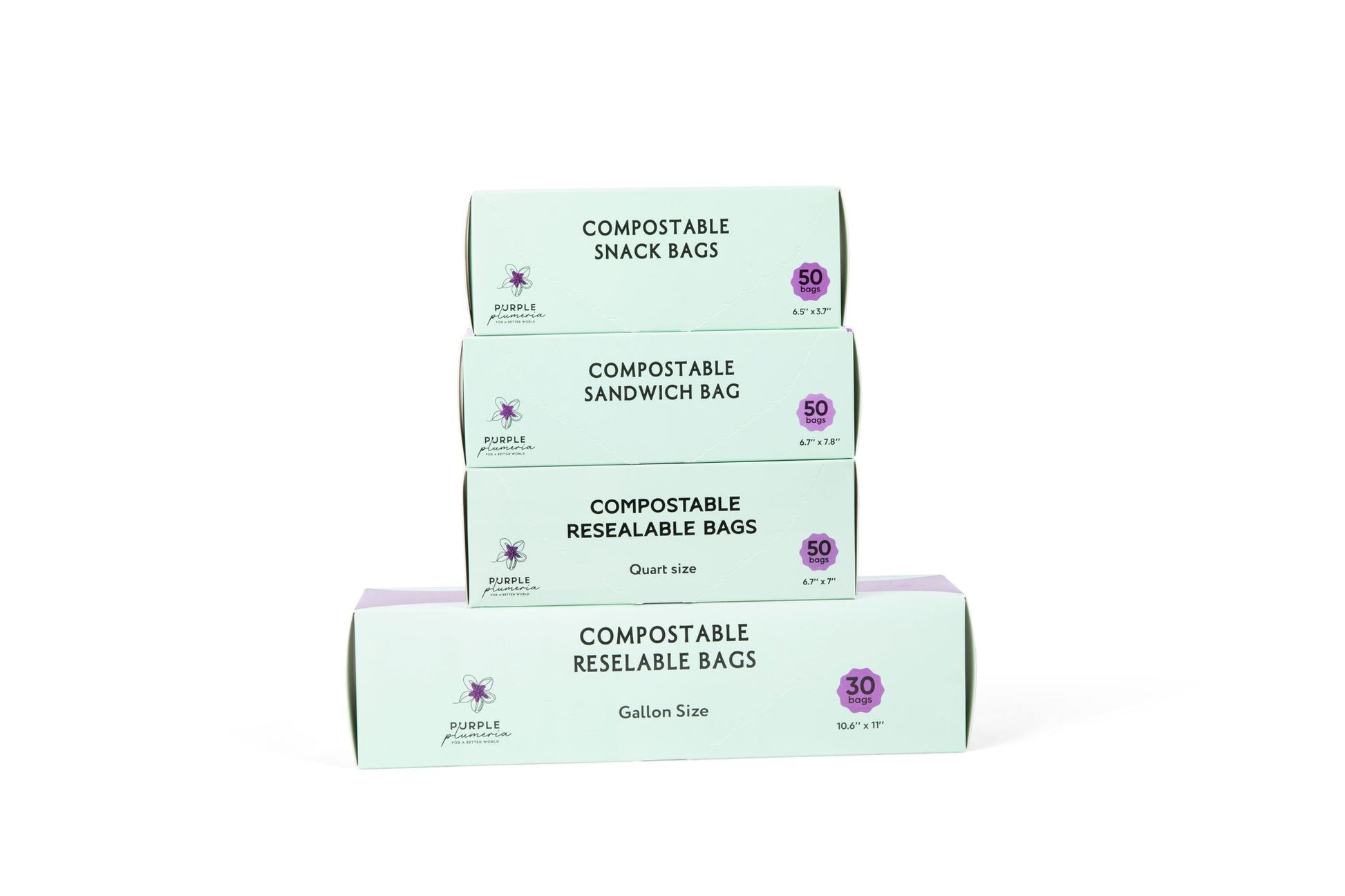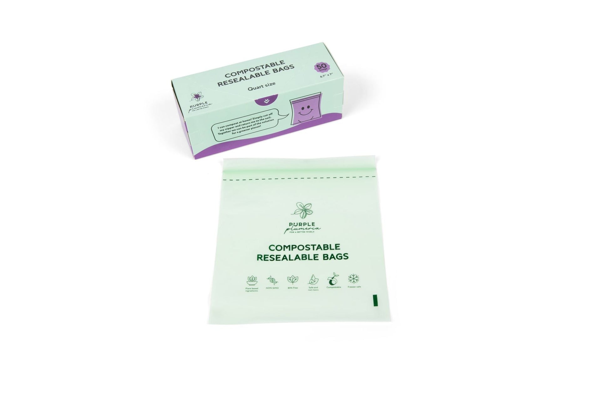 Compostable Resealable Bags. Eco-Friendly & Durable. Snack, Sandwich, Quart & Gallon Sizes