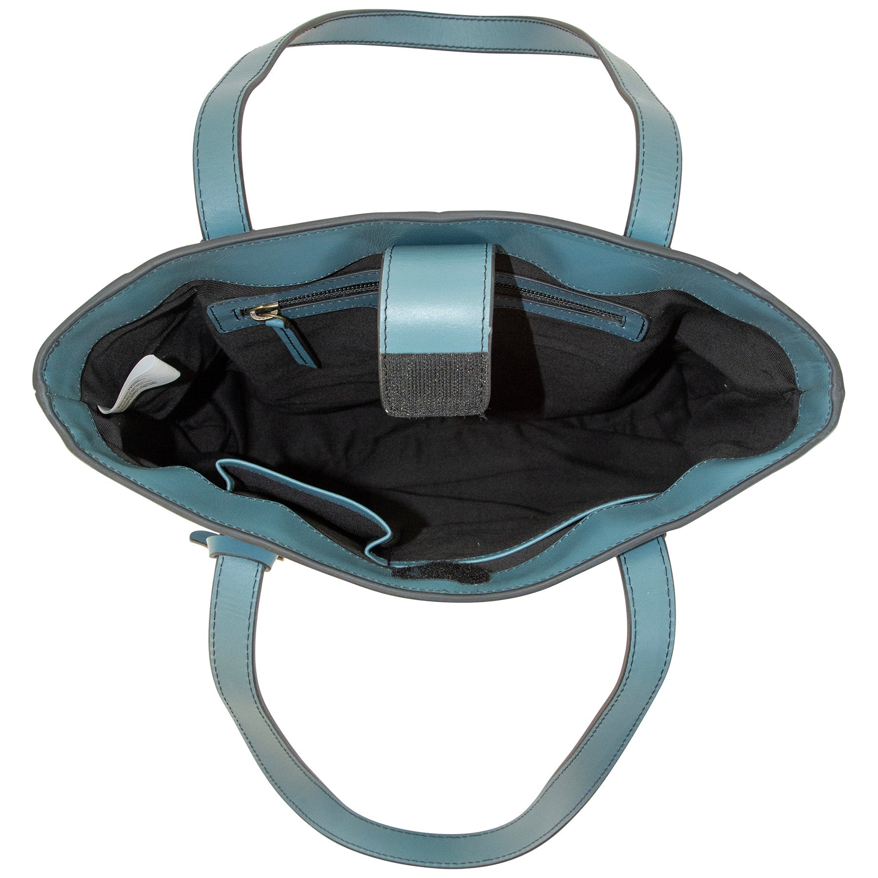 Inside the main compartment of the tote, the organization is made effortless with the inclusion of an interior zipper pocket trimmed with a sophisticated leather edge. Opposite this, you'll find two open pockets, perfectly sized for your phone, keys, or other small items you need to keep within easy reach.