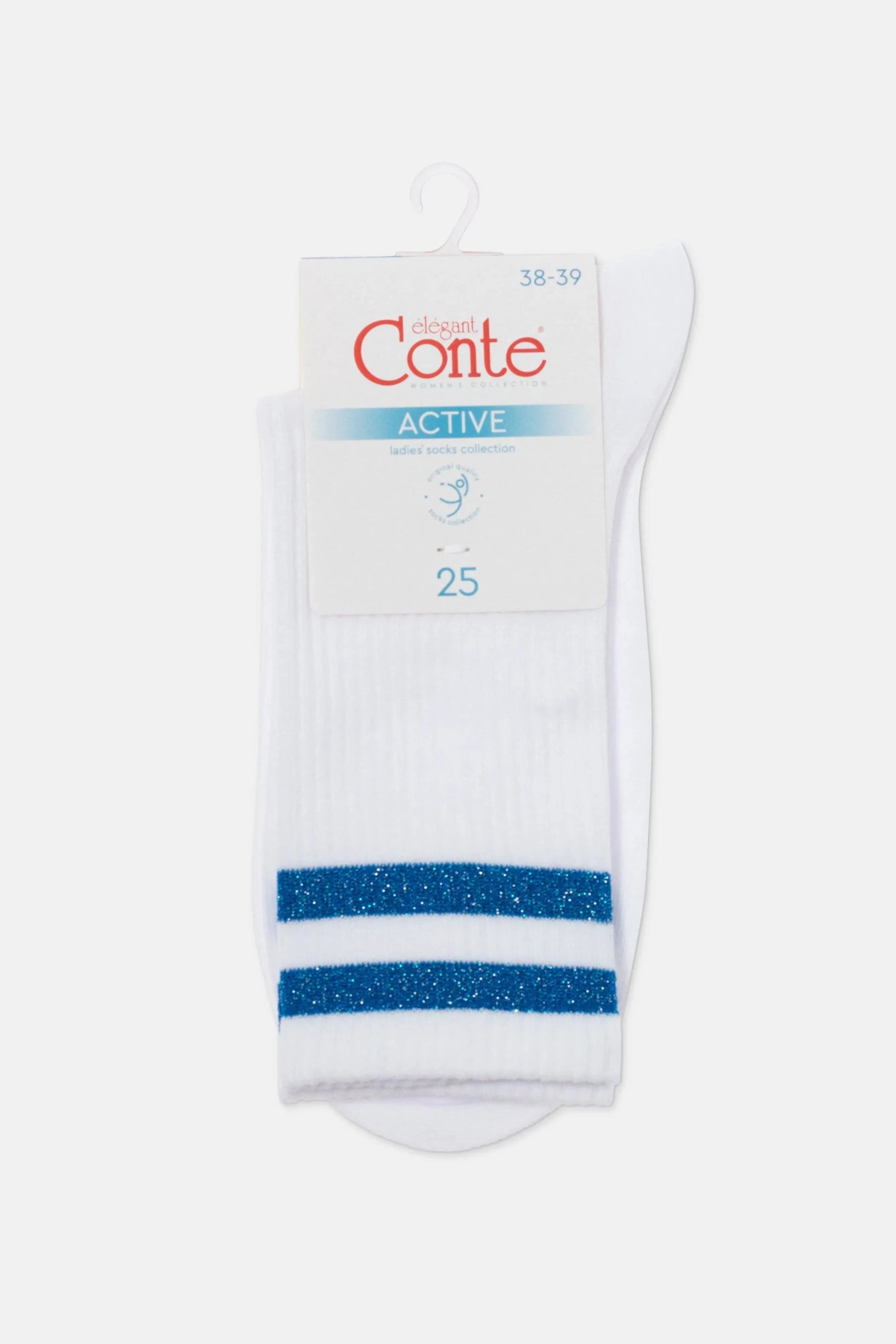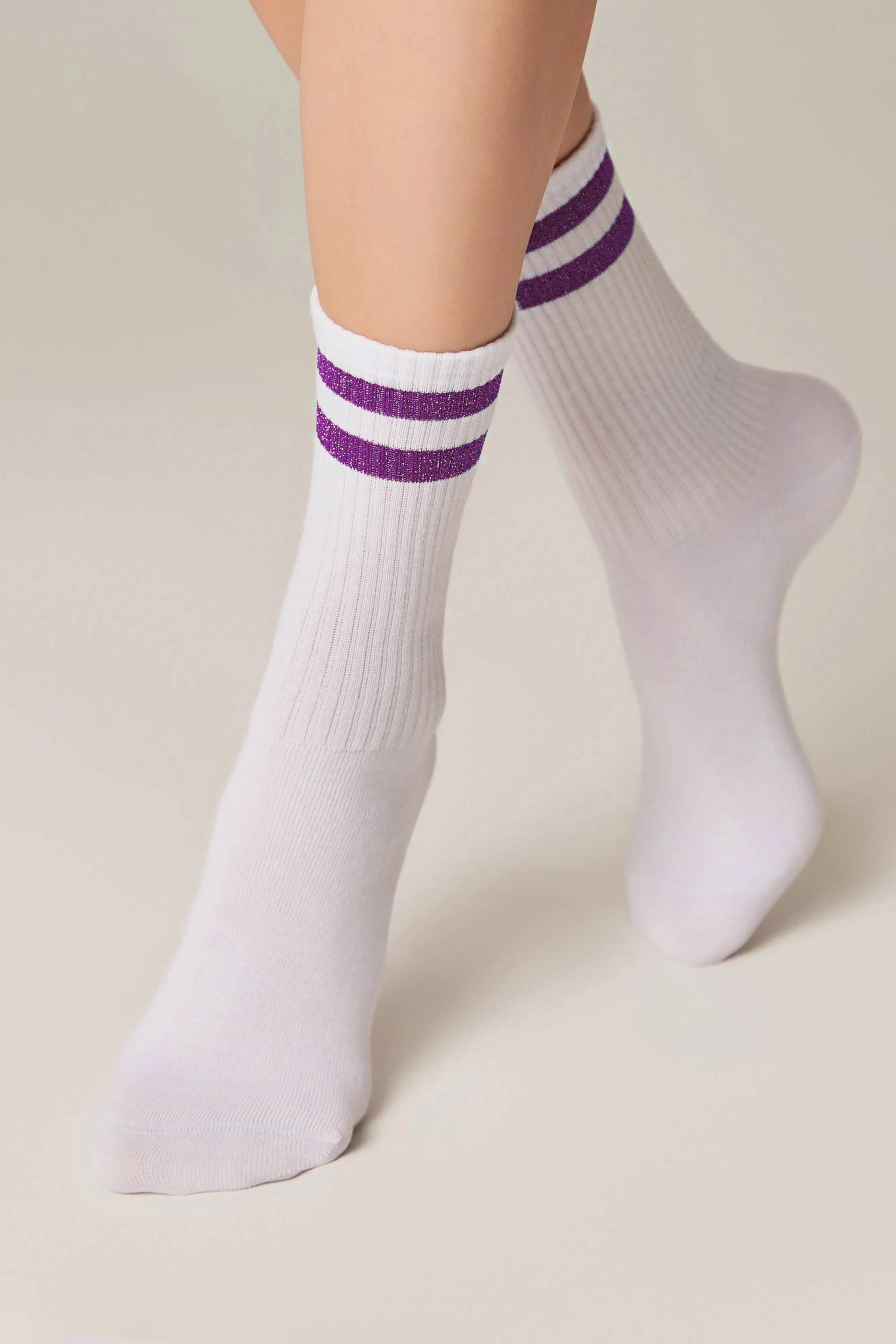 These cotton socks ACTIVE with lurex stripes add a bold accent to any sporty or casual outfit. Their bright design makes them stand out and express your unique style.