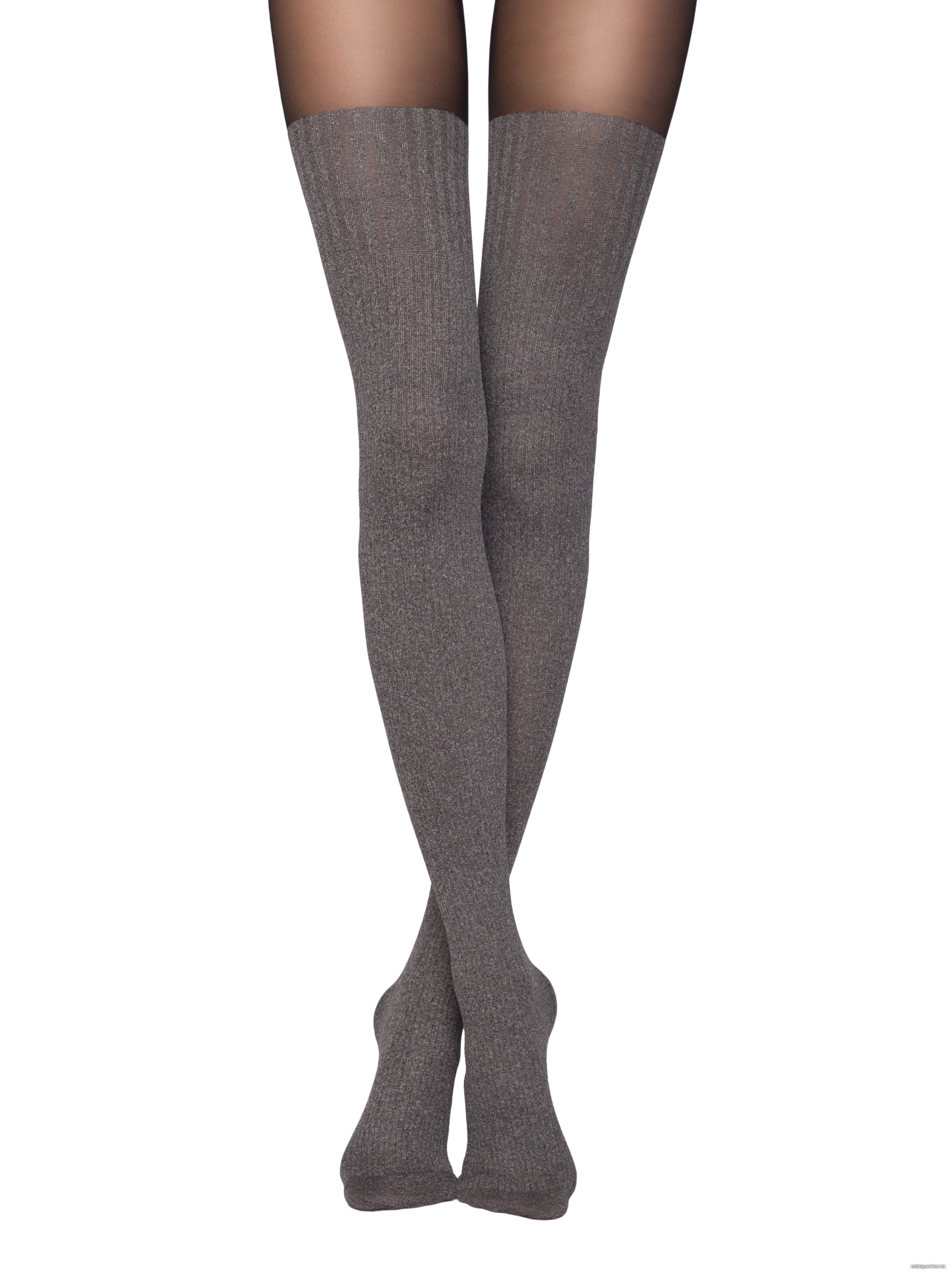 Плотные эластичные фантазийные колготки 60 Ден имитация меланжевых гольфинов, верх 20 Ден прозрачный до талии с Т-образным верхом, плоский шов, хлопковая ластовица.