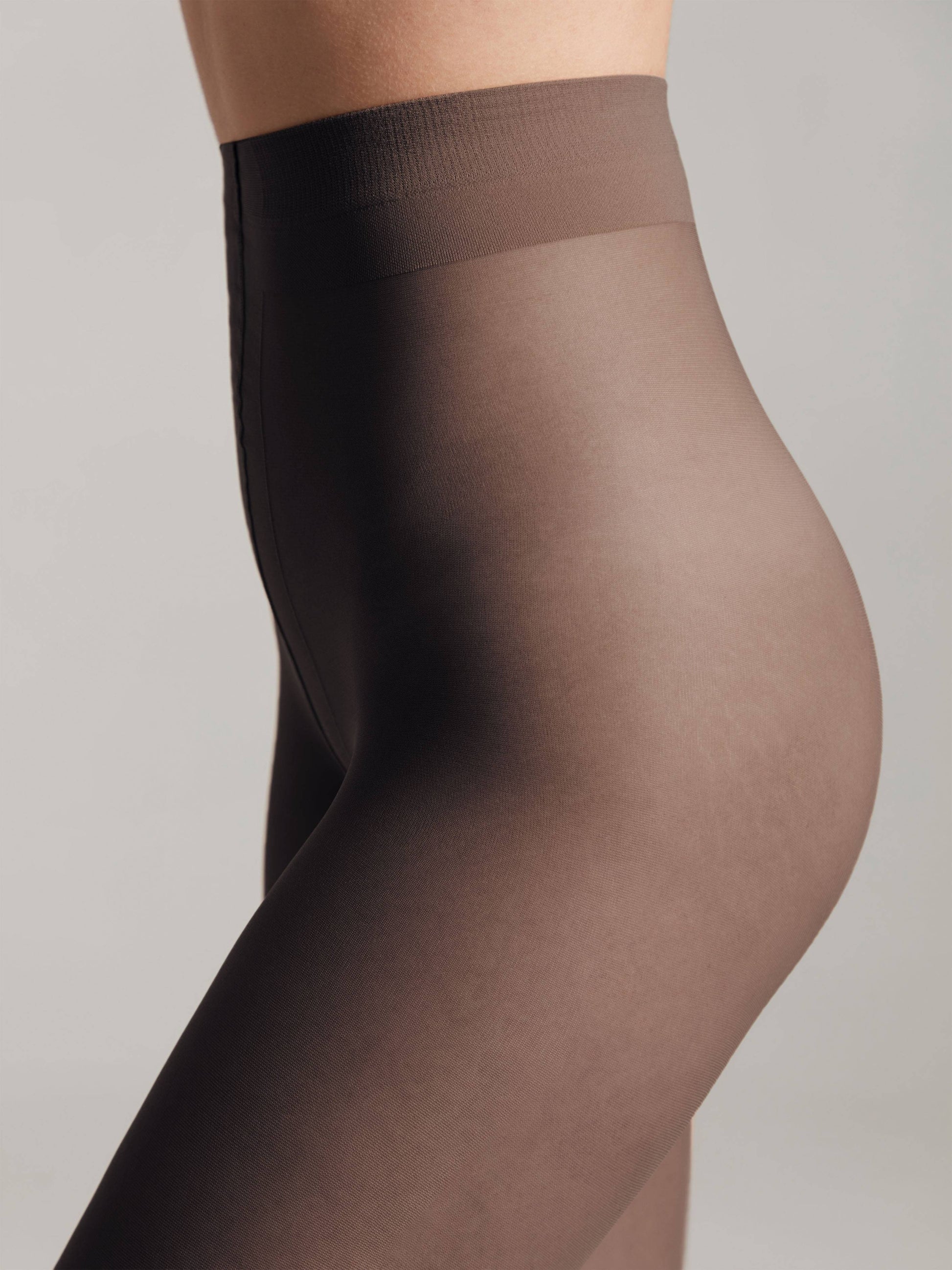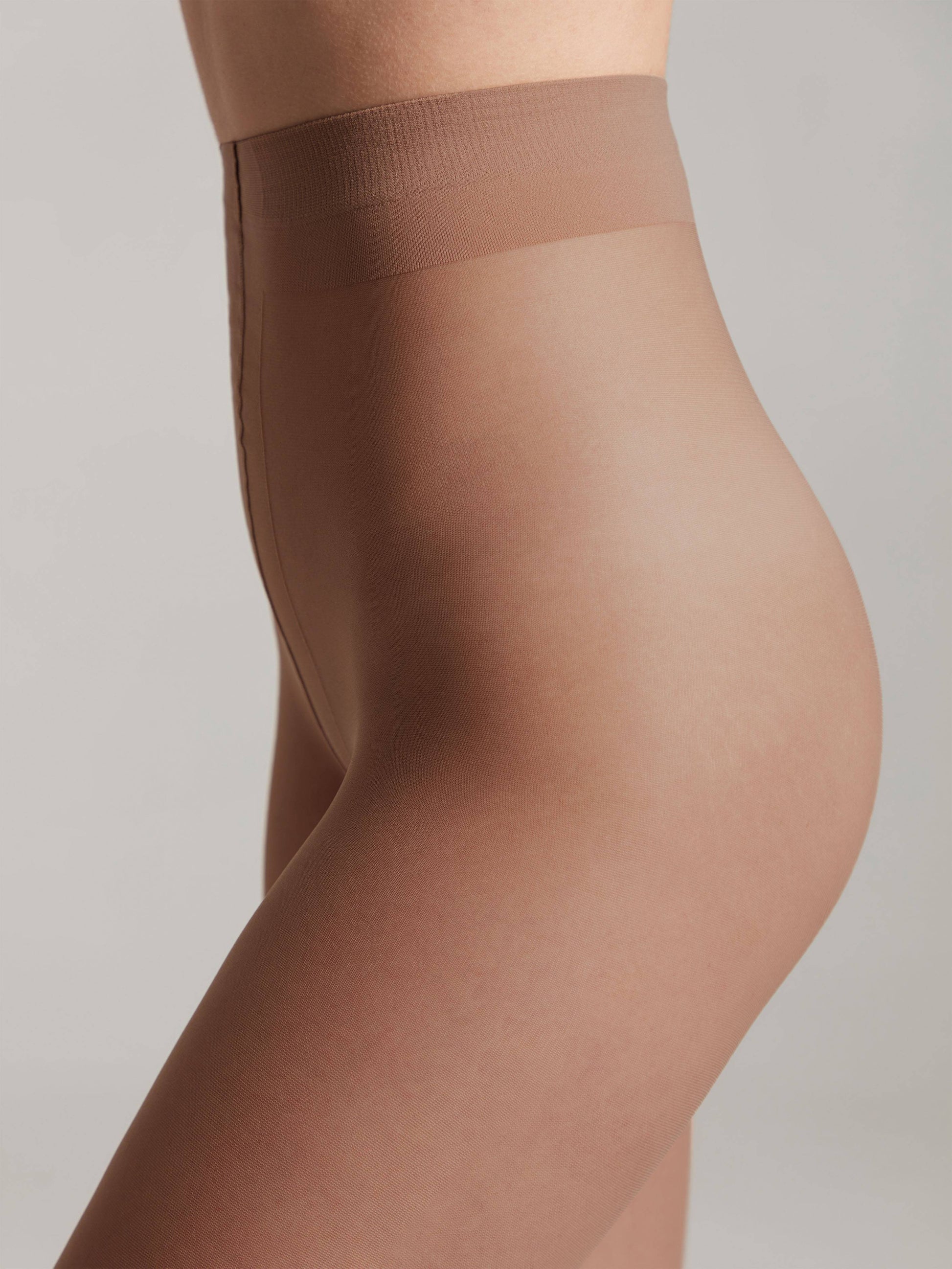 Conte Tango 20 Den tights provide a timeless sheer appearance with a classic to-waist fit and a sleek satin finish. Made from a high-quality blend of polyamide, elastane, and Lycra, they offer excellent elasticity and shape retention for all-day comfort. The T-top construction features a 3 cm wide elastic band supporting a reinforced 3 cm top section, ensuring a secure and smooth fit without sagging. Thoughtfully designed with a hygienic cotton gusset and flat seams, these tights reduce irritation while enhancing wearability. Reinforced toes increase durability, making them suitable for frequent use. Size XL models include an additional insert area, though without the cotton gusset, to accommodate varied body shapes. A subtle fragrance adds a touch of freshness, completing these expertly crafted tights ideal for both every day and special occasion wear.