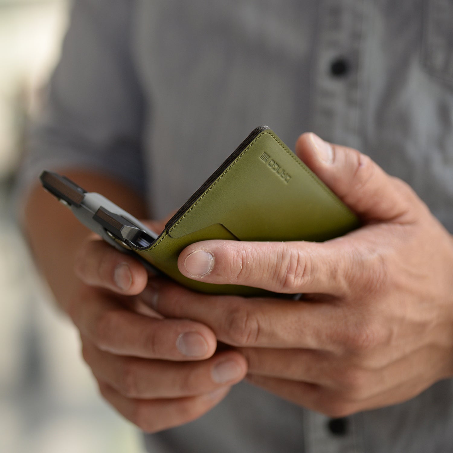 • Genuine top grain 3 pocket bifold leather and DTEX material that is secured to the Dango Wallet chassis with mil-spec bolts. Super slim profile