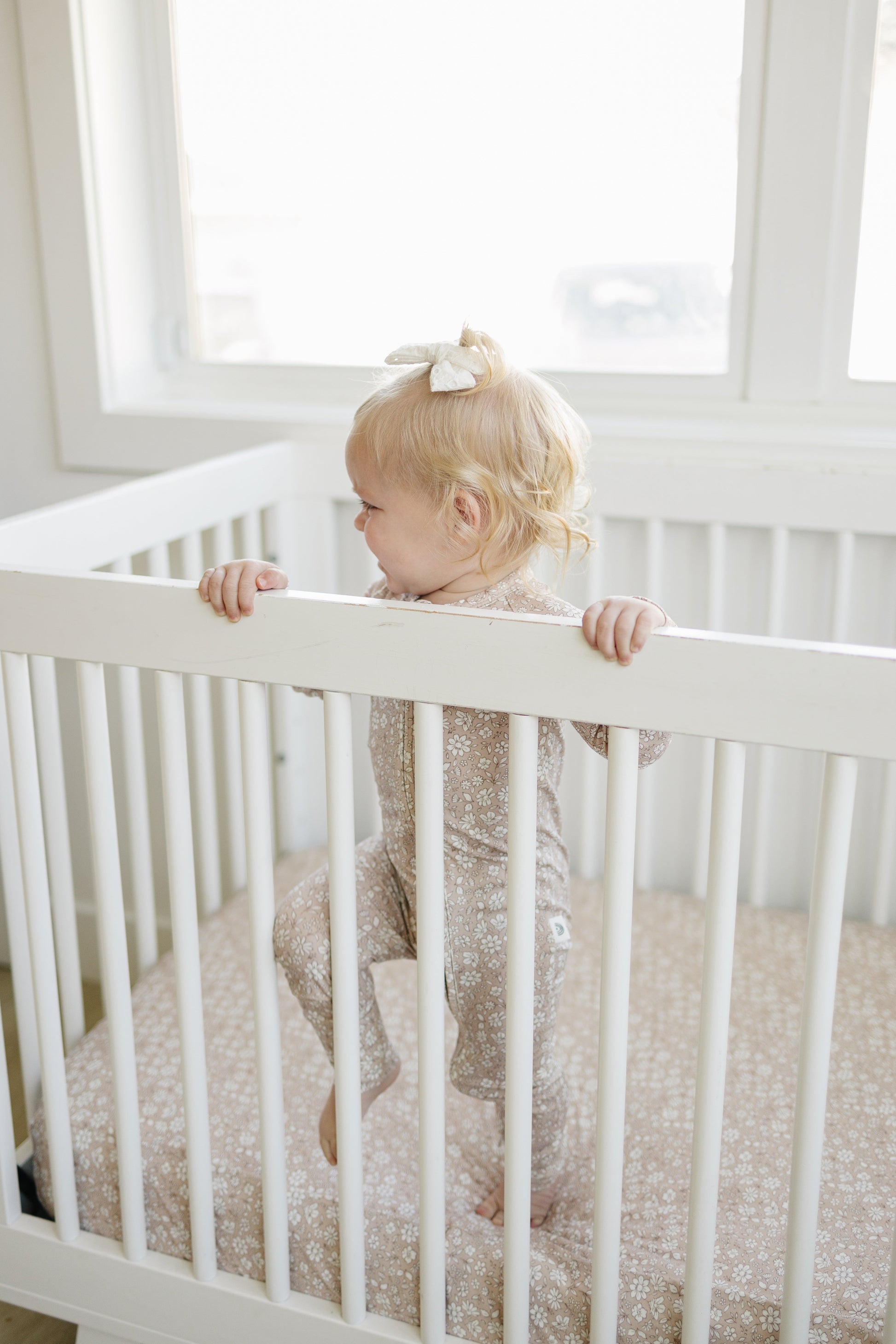 Ensure a peaceful night’s sleep with our Dainty Ditsy Bamboo Crib Sheet. Featuring a neutral beige floral print, this breathable, eco-friendly sheet is gentle on delicate skin and fits snugly on standard crib mattresses. Perfect for creating a calm and cozy nursery environment.Crafted from high-quality 220gsm bamboo fabric, this crib sheet provides a soft and luxurious feel that ensures a cozy and gentle environment for your baby.