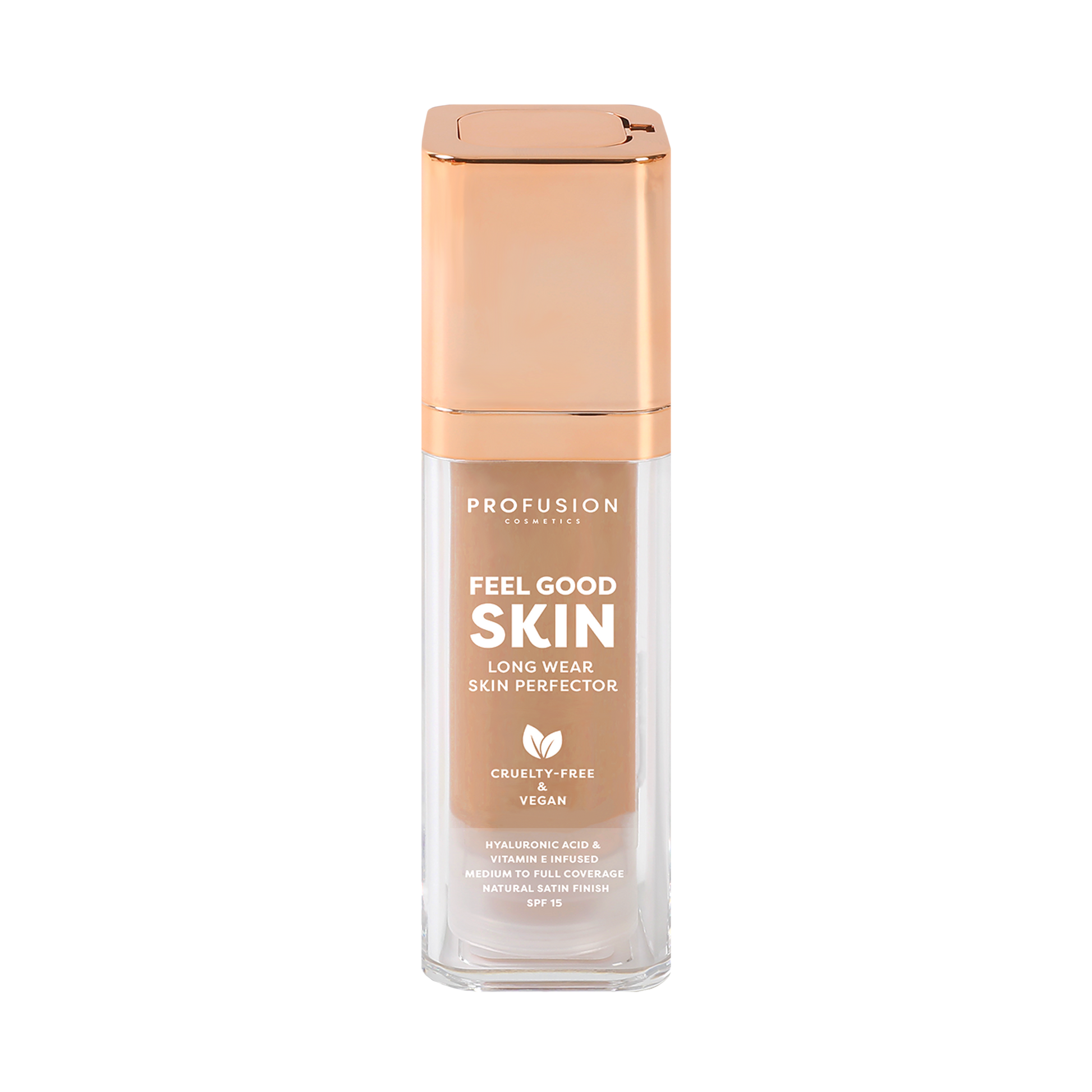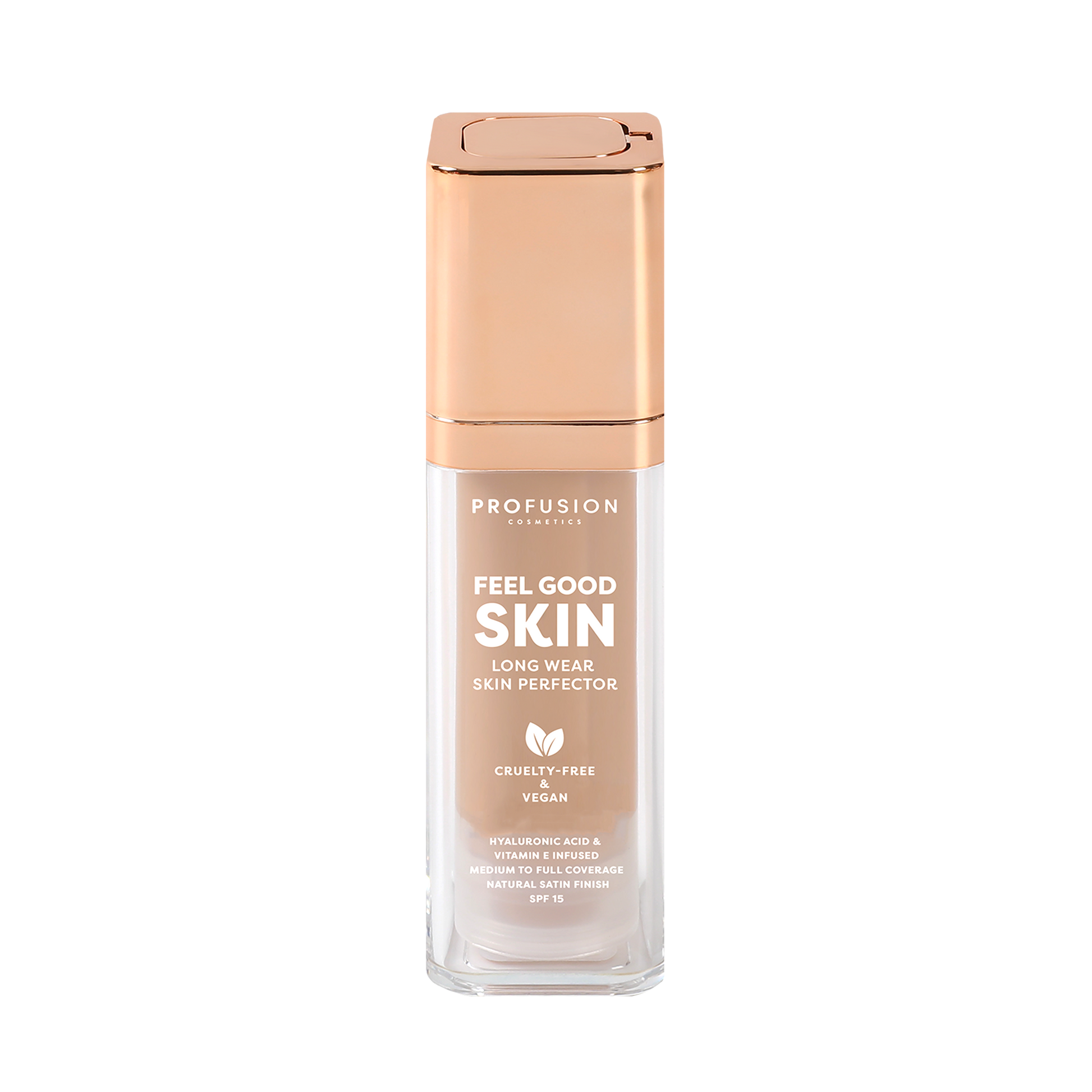 Profusion Cosmetics Feel Good Skin Foundation Make Up is more than just cosmetic makeup – it's skincare. This satin-finish skin perfector is infused with Hyaluronic Acid and packed with SPF 15 to keep your skin protected and hydrated. It also offers a buildable, radiant coverage with serum like weightlessness and is available in 12 curated shades because moisturizers shouldn’t be one fits all.