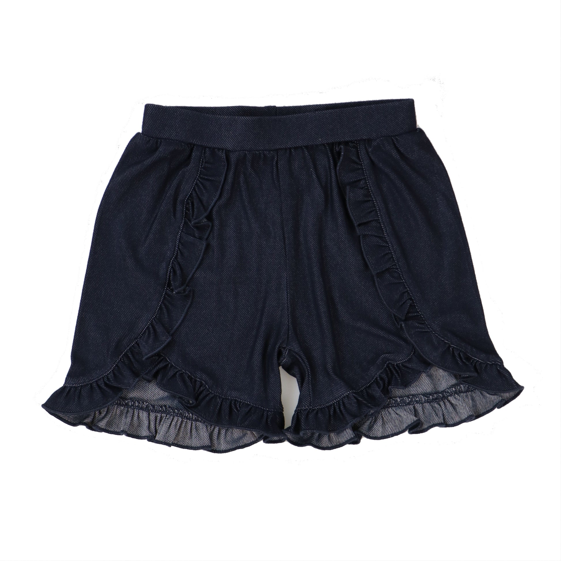 Our new Flat Front Ruffled Denim Shorts are a cool, casual style for spring and summer outfits. Made from our stretchy denim knit, that are as comfortable as they are cute! Pair them with her favorite tunic or top for a fun combo with any color!