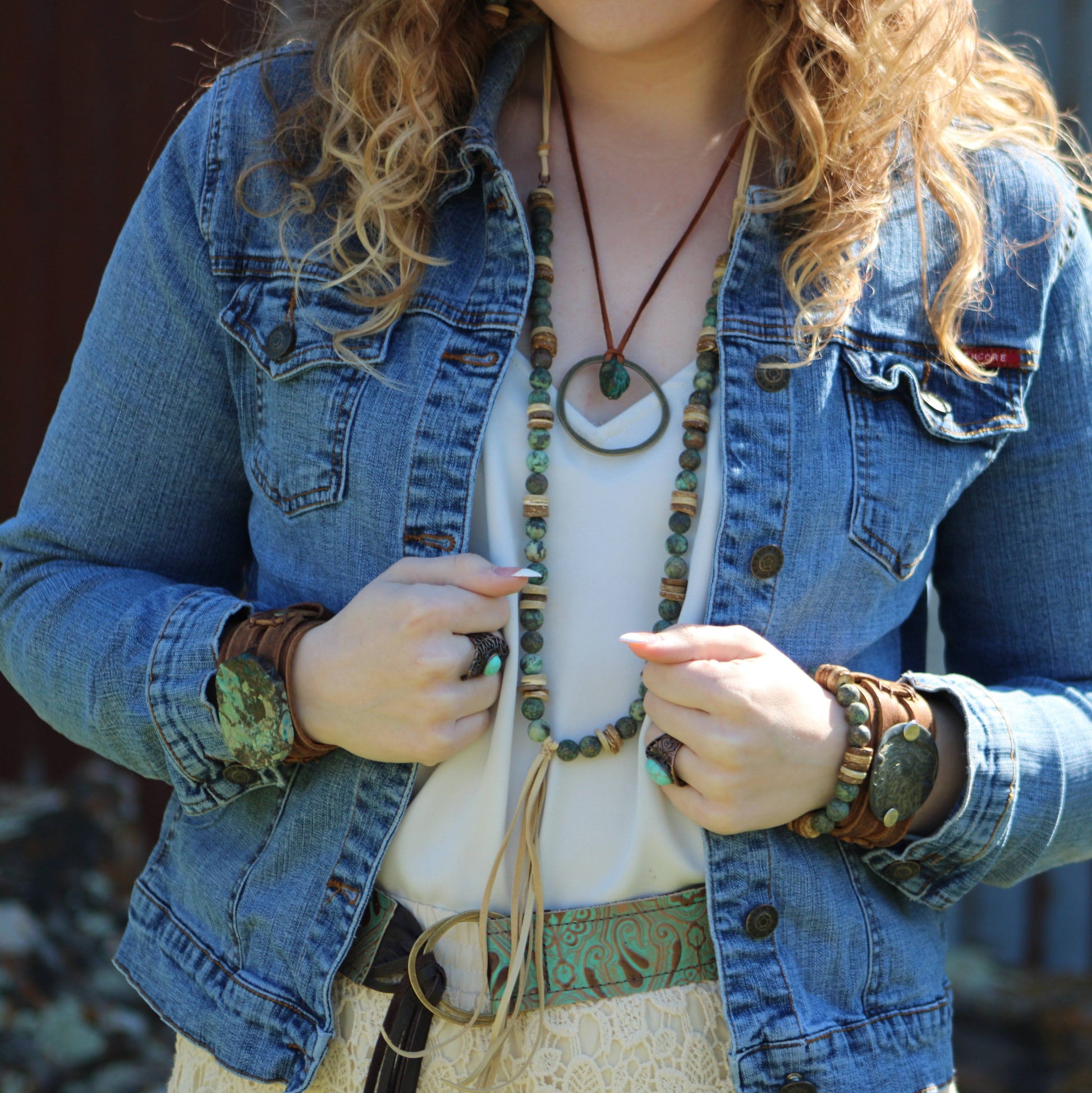 Inspire with this Ocean Agate on Dusty Leather Cuff. Featuring a large, uniquely cut ocean agate stone, each cuff showcases a range of stunning colors. Make a statement with this one-of-a-kind piece that combines the beauty of nature with the ruggedness of leather.