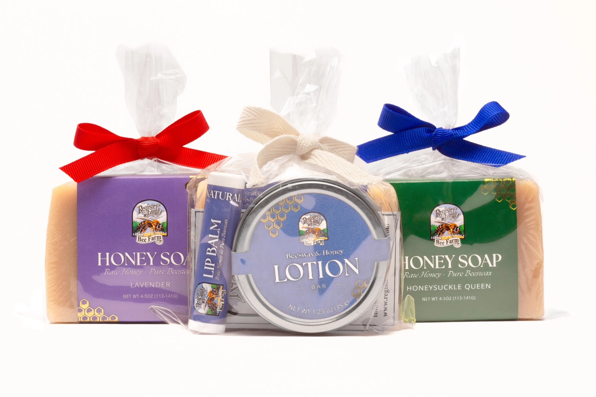 Our Skin Care Gift Bags are ideal for any occasion! Each bag features a Honey Soap, a nourishing Lip Balm, and our Honey Lotion Bar. Treat someone special (or yourself!) to this delightful collection that embodies the natural goodness of honey and beeswax.