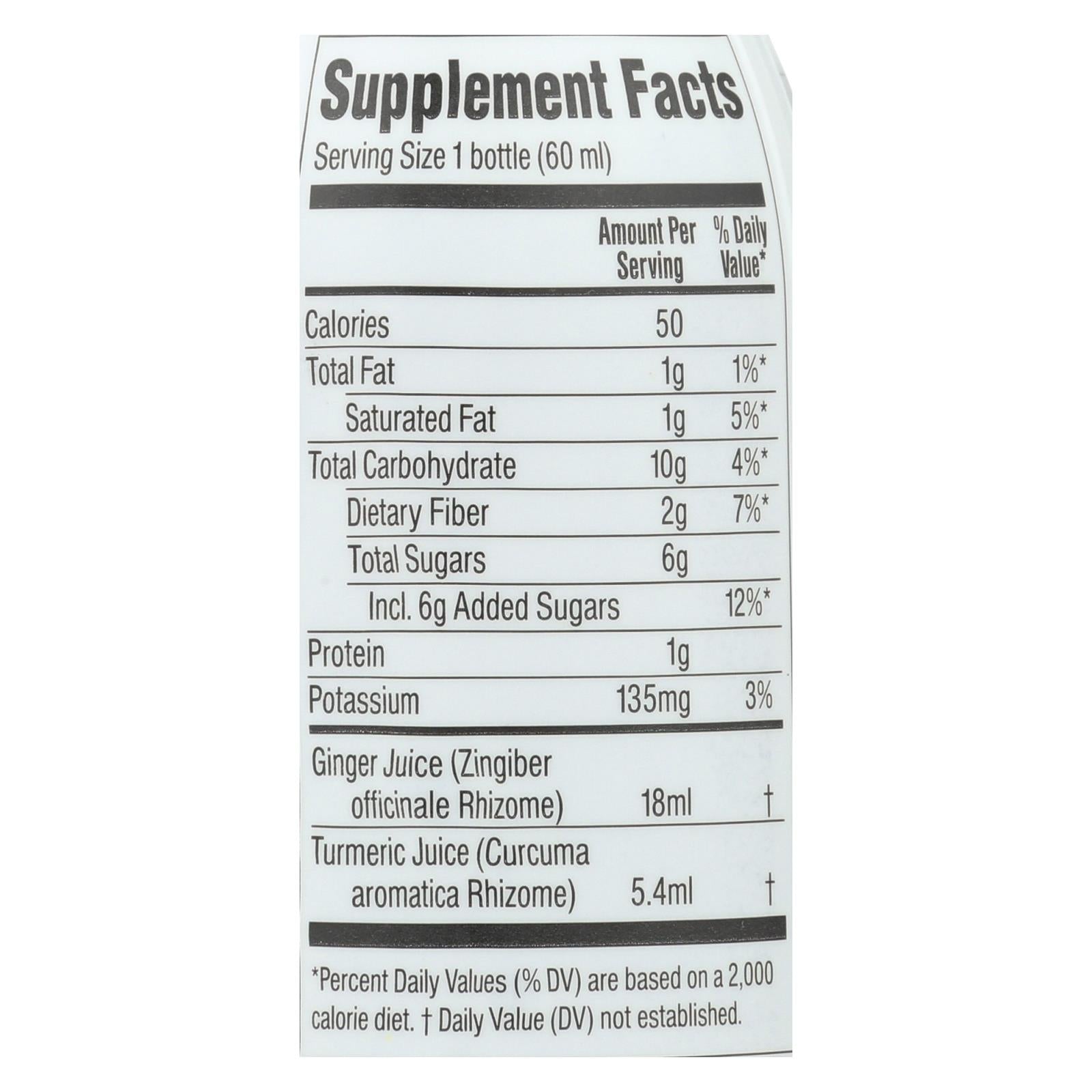 Revitalize your daily routine with this powerful dietary supplement packed with 30% ginger juice. These Ginger Shots with Turmeric are perfect for those seeking a natural boost, combining the earthy tones of ginger with the vibrant essence of turmeric. Each 2-fluid ounce shot is designed to fit seamlessly into your health regimen, whether you're at home or on the go.