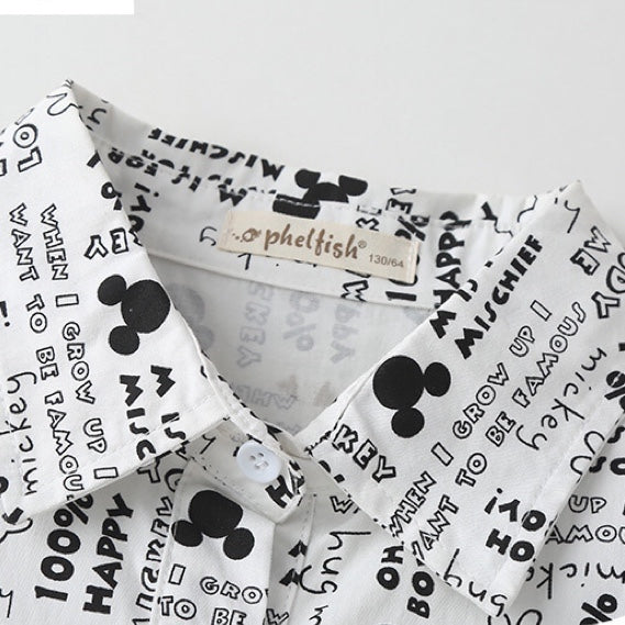 Girl Printed Pattern Single Breasted Design Polo Collar Dress