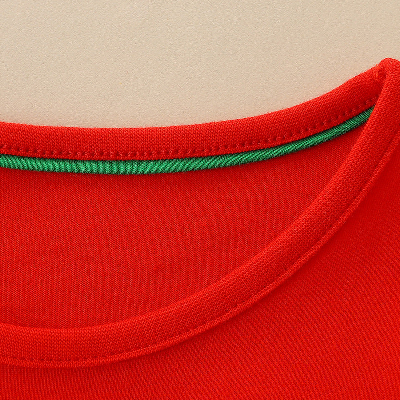 This Girls’ European-American Style Christmas Tree Cartoon Pattern Striped Sleeves Dress is perfect for the holiday season! Made with high-quality materials, this dress features a festive Christmas tree design and striped sleeves that will make your little one stand out. Bring some holiday cheer to your child's wardrobe with this charming dress.