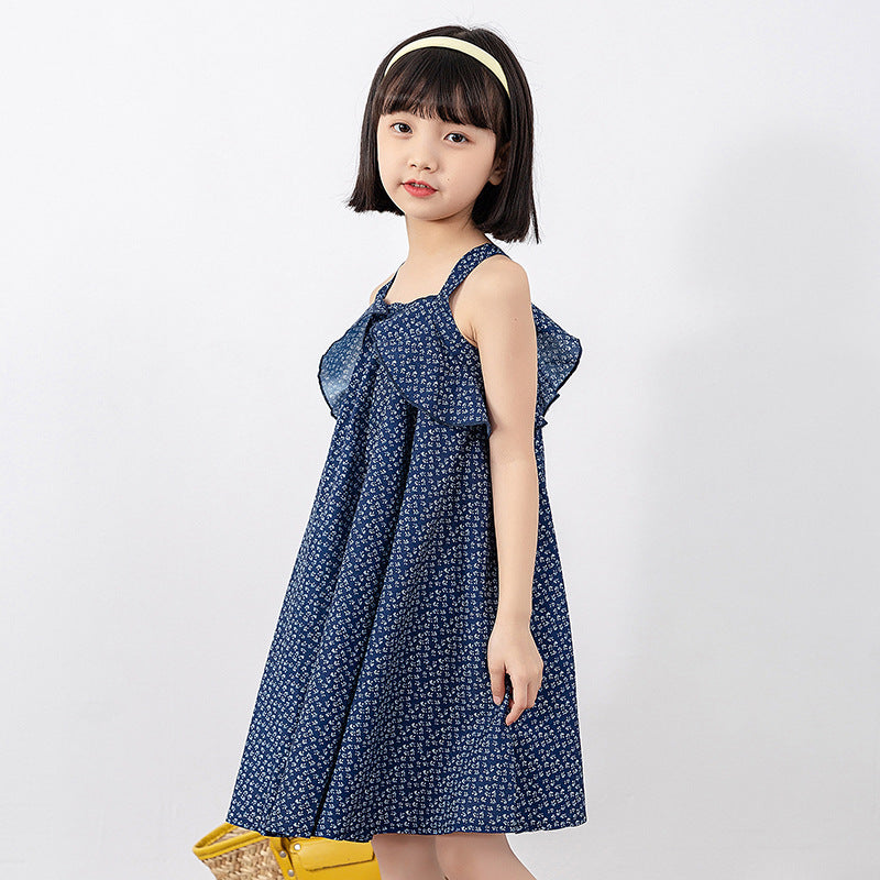 Girls Polka Dot Pattern Sleeveless Ruffle Design Dress