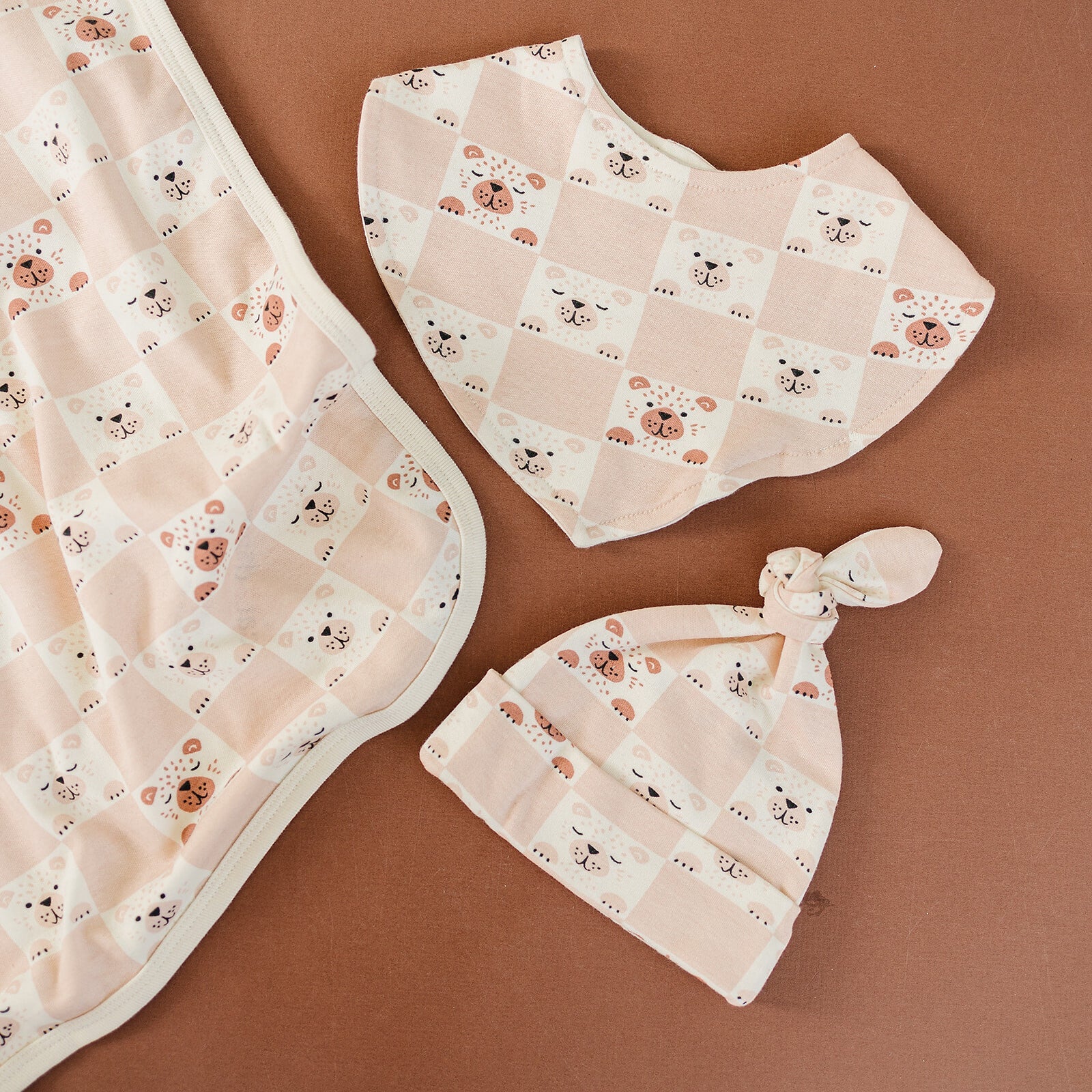 GOTS Certified Organic Cotton Blanket - Checkered Bear