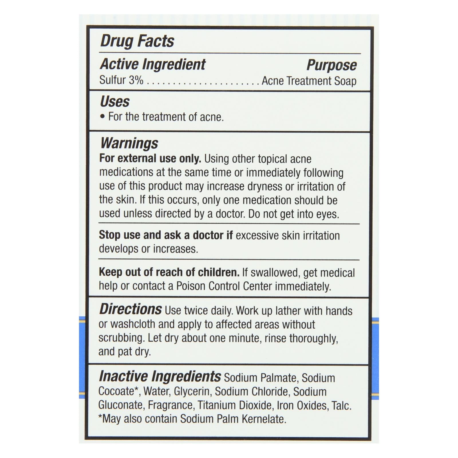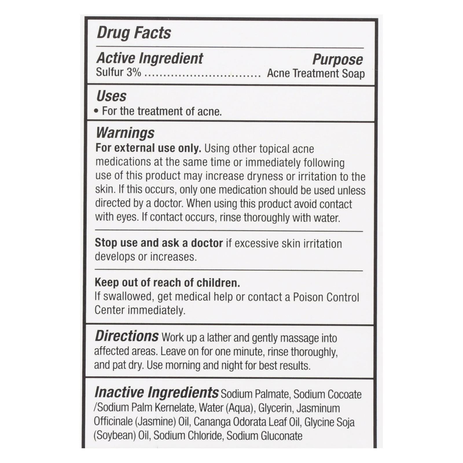 - Sulfur: Unclogs pores and reduces inflammation