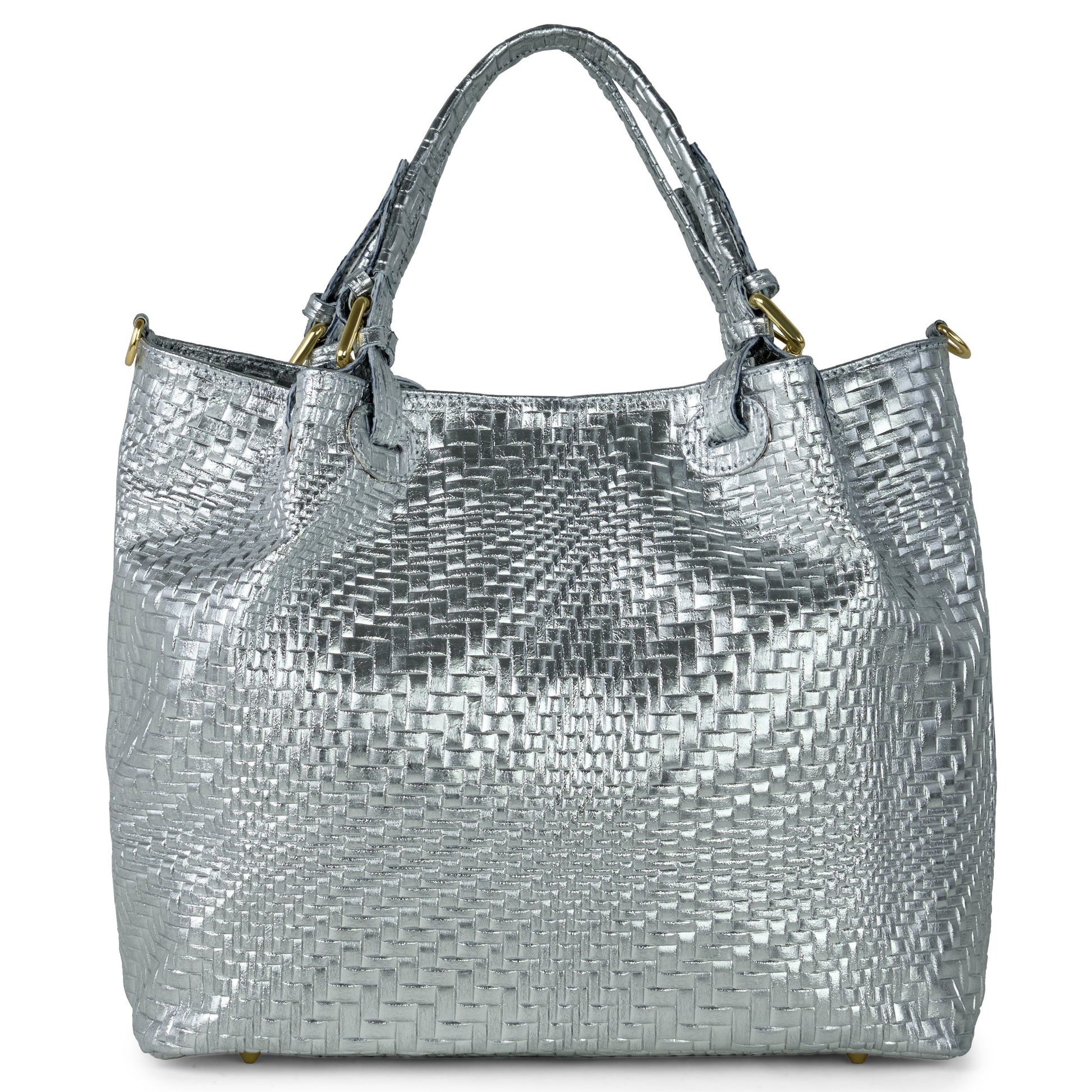 Crafted from genuine suede with a Gleam Suede embossed pattern, it resembles elegant interlacing with a metallic shimmer. The Florentine tanning techniques enhance the richness of the material and give it a soft, velvety touch.