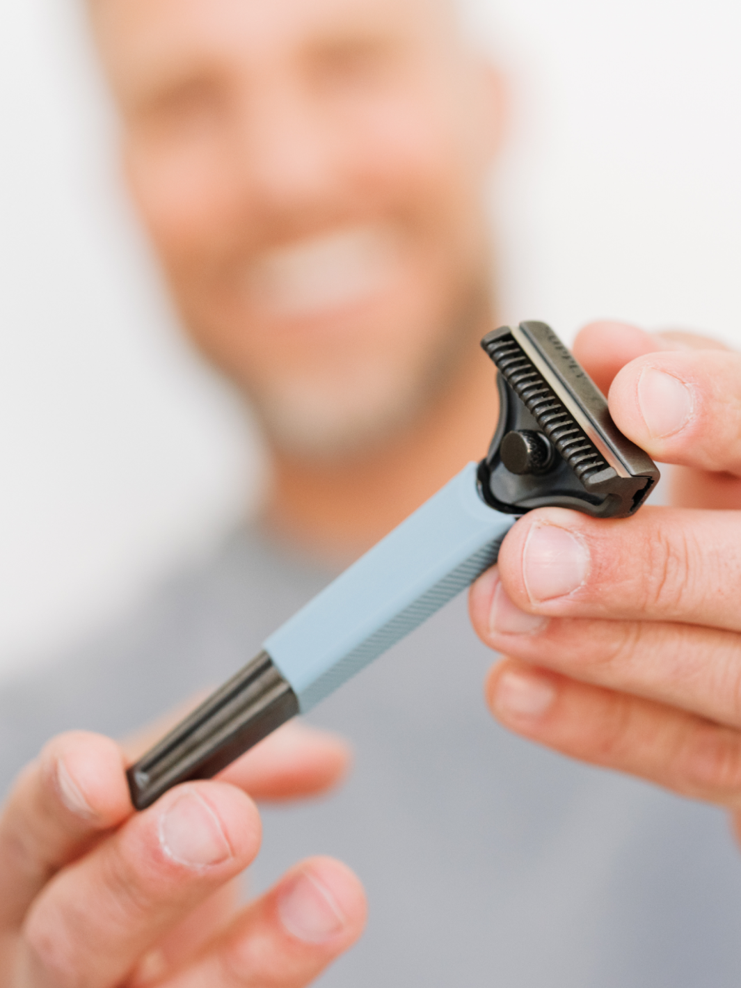 It's time to take total control of your Single Edge shave. Our Grip Sleeve’s ribbed edges let you take your SE or Pro over and around every angle and sensitive area with safety and confidence. It doesn’t matter if your hands are wet or covered in shaving cream, the sleeve won’t let you lose your grip.