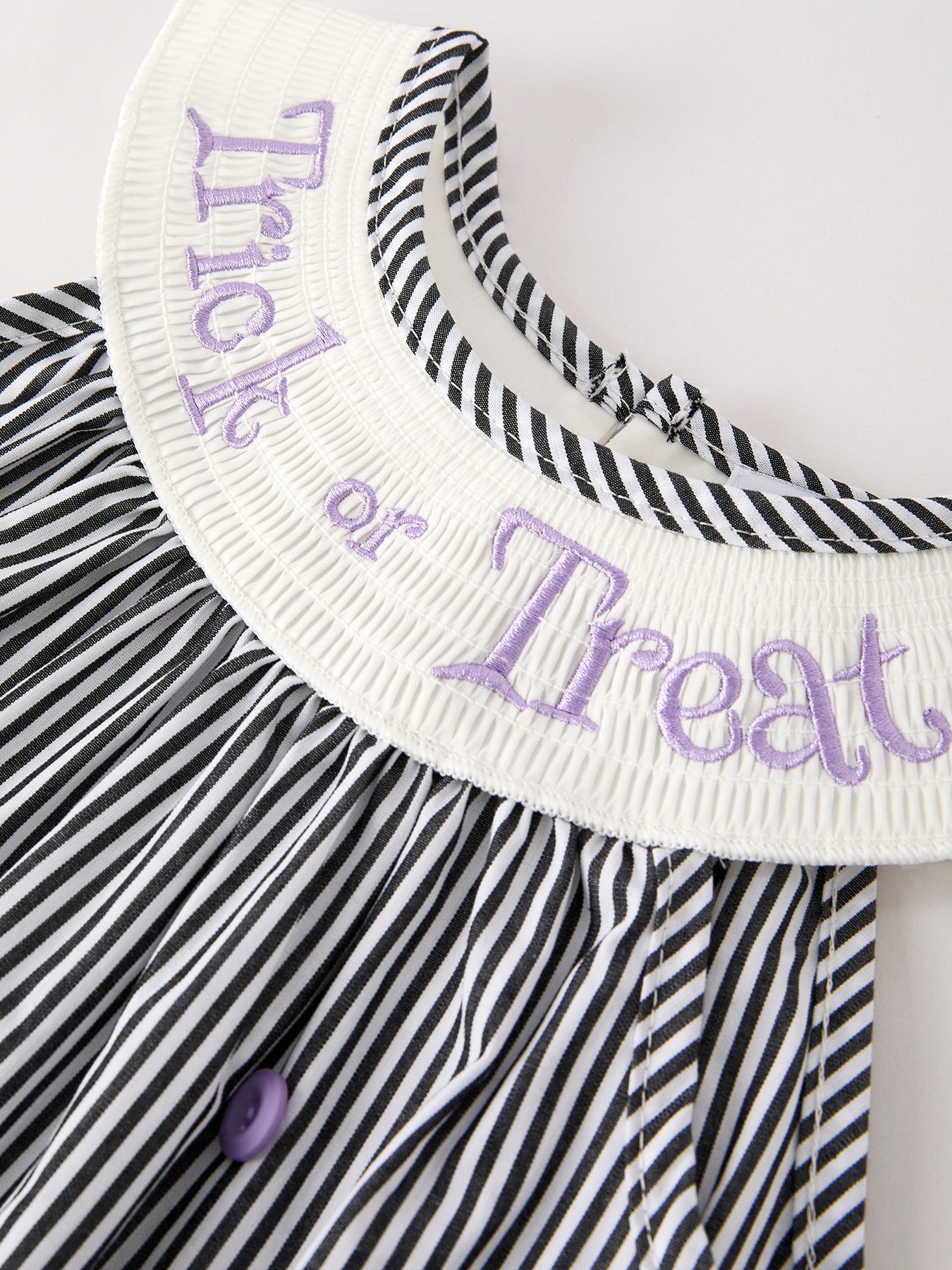 Halloween Striped "Trick Or Treat" Smock Embroidered Baby Girl Dress