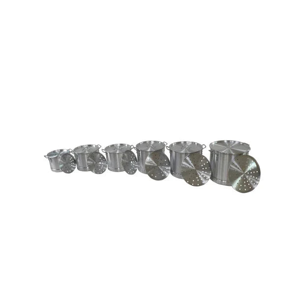 - Aluminum Steamer Set: This product includes an IMUSA Aluminum Steamer Set that consists of five steamers with capacities of 20, 24, 32, 40, and 52 quarts.