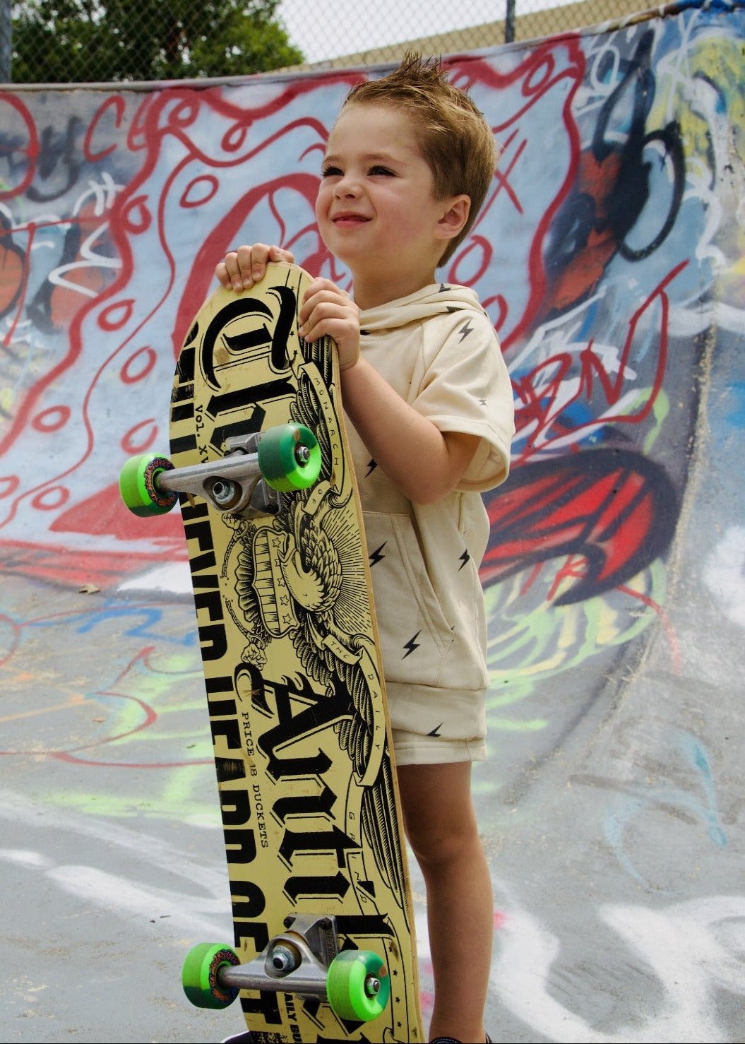 The Jackson Set is a dynamic lightning bolt outfit, perfect for adding a spark to your little rascal's wardrobe. Crafted from soft, plush terry material, this set offers ultimate comfort and breathability, ensuring your child stays cool and cozy all day long. The short sleeves make it ideal for warm weather, while the vibrant lightning bolt design adds a fun, energetic vibe. Whether your little one is playing, lounging, or ripping it up on the board, this lightning bolt outfit keeps them stylish and comfortable.